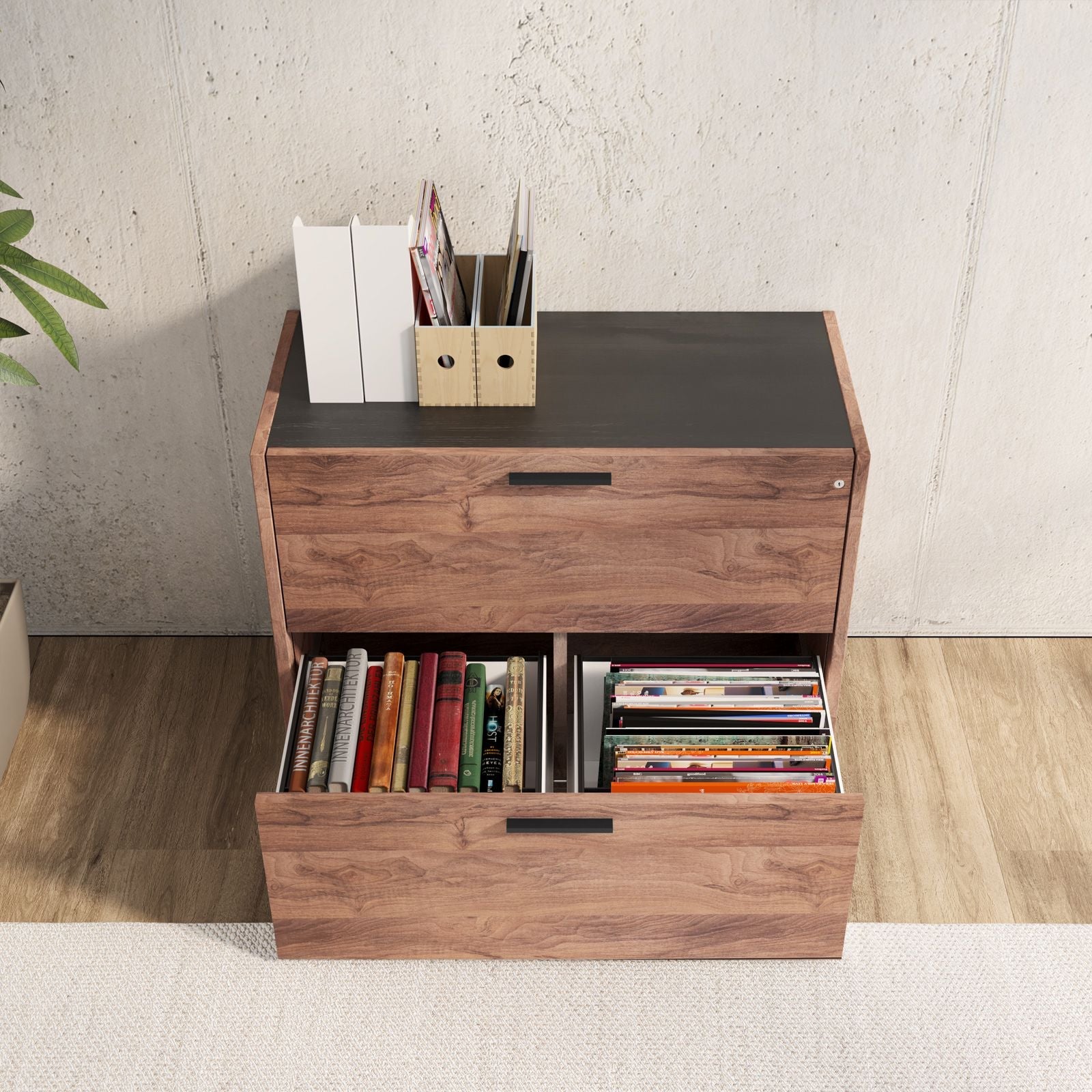 Commode de bureau d'archives avec 2 tiroirs de bureau Da Vinci Noyer avec clé