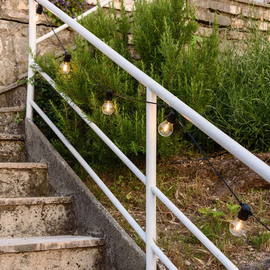 L'un des avantages de cette chaîne d'ampoules est que si une ou plusieurs ampoules grillent, les autres continueront à fonctionner sans problème (fonctionnement en parallèle). Vous pouvez ensuite dévisser l'ampoule qui ne fonctionne pas et la remplacer par une ampoule LED E27 de rechange parmi celles compatibles.