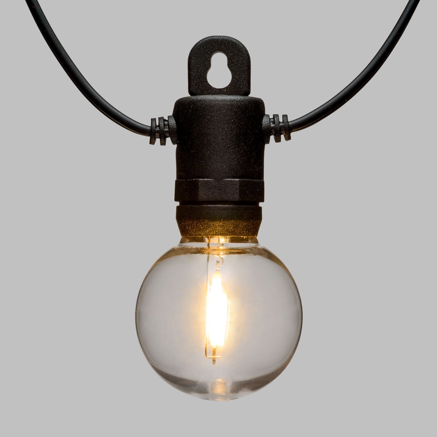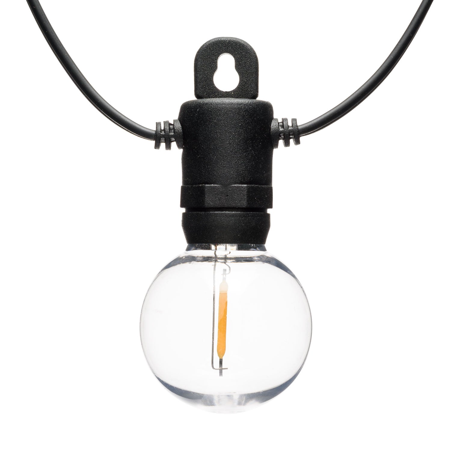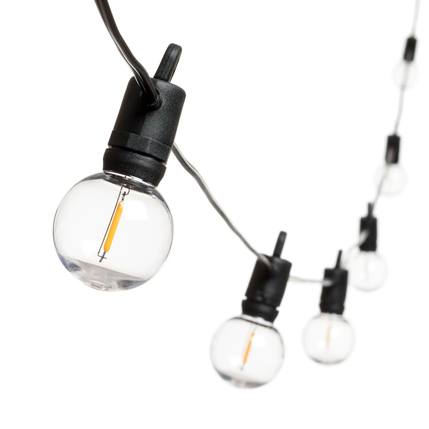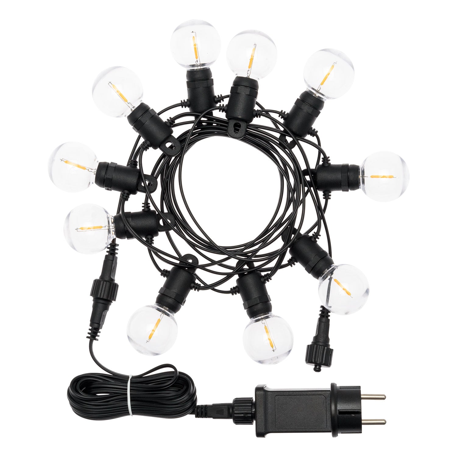 Prix régulier €37,90 Prix réduit €31,90Cette caténaire de 4 mètres de long est composée de 10 ampoules globe en plastique transparent, qui émettent une lumière blanche chaude et constante.