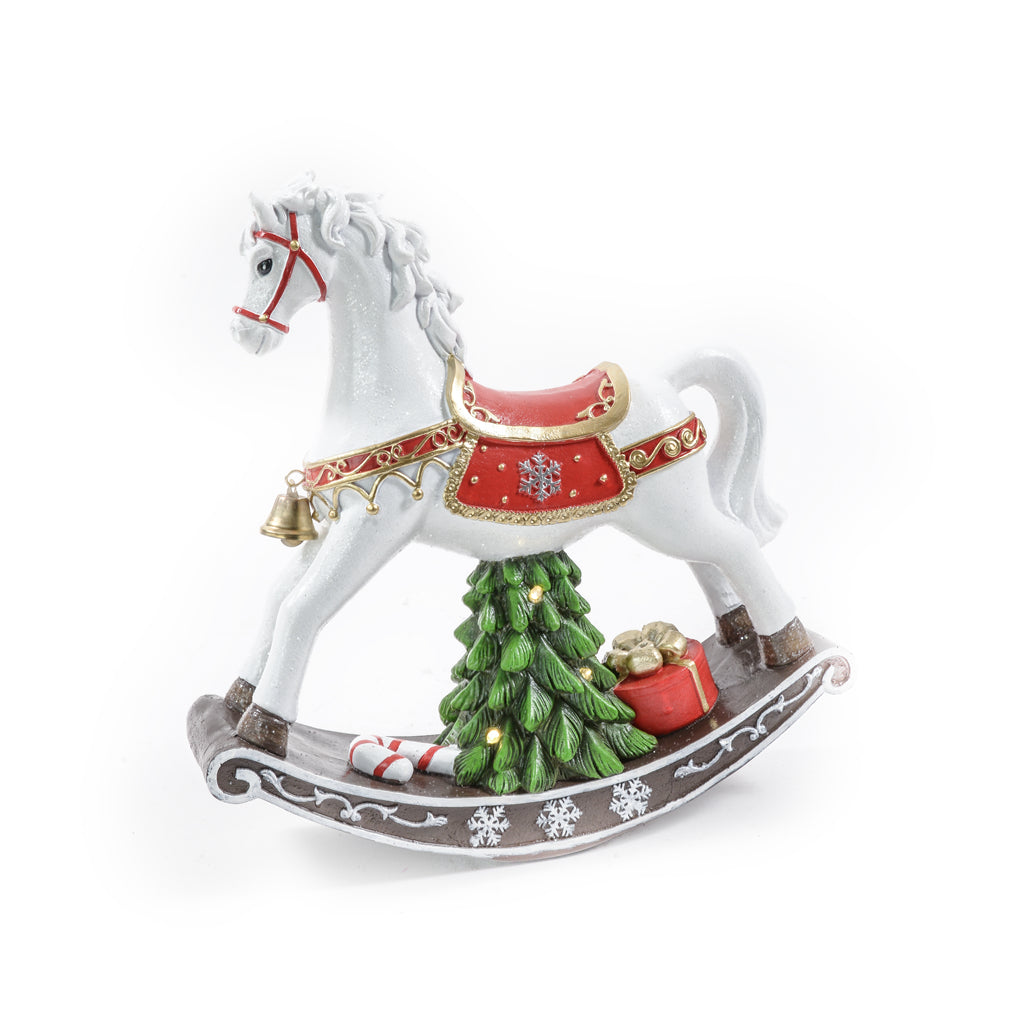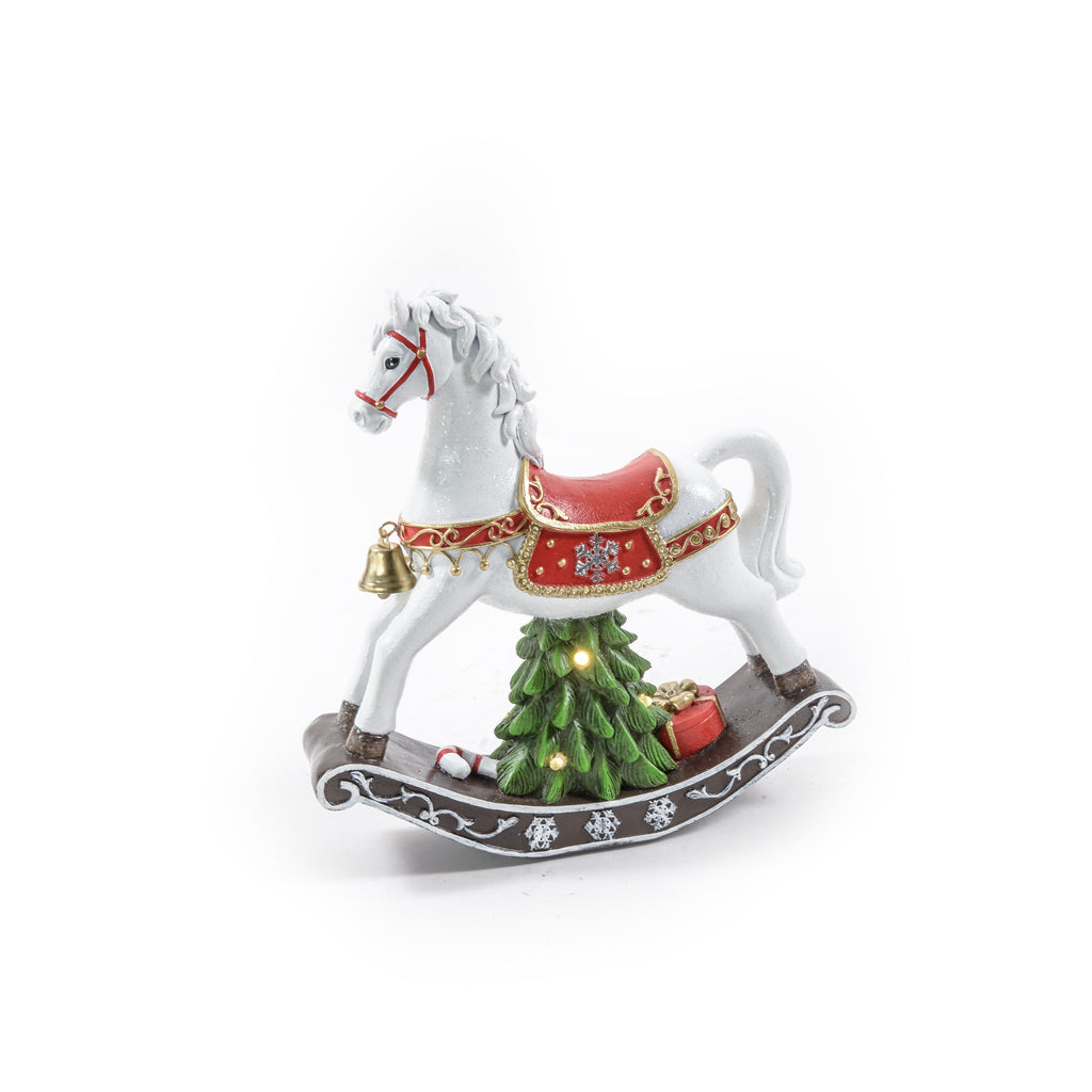 Cheval à bascule en résine blanche avec lumières, décoration intérieure