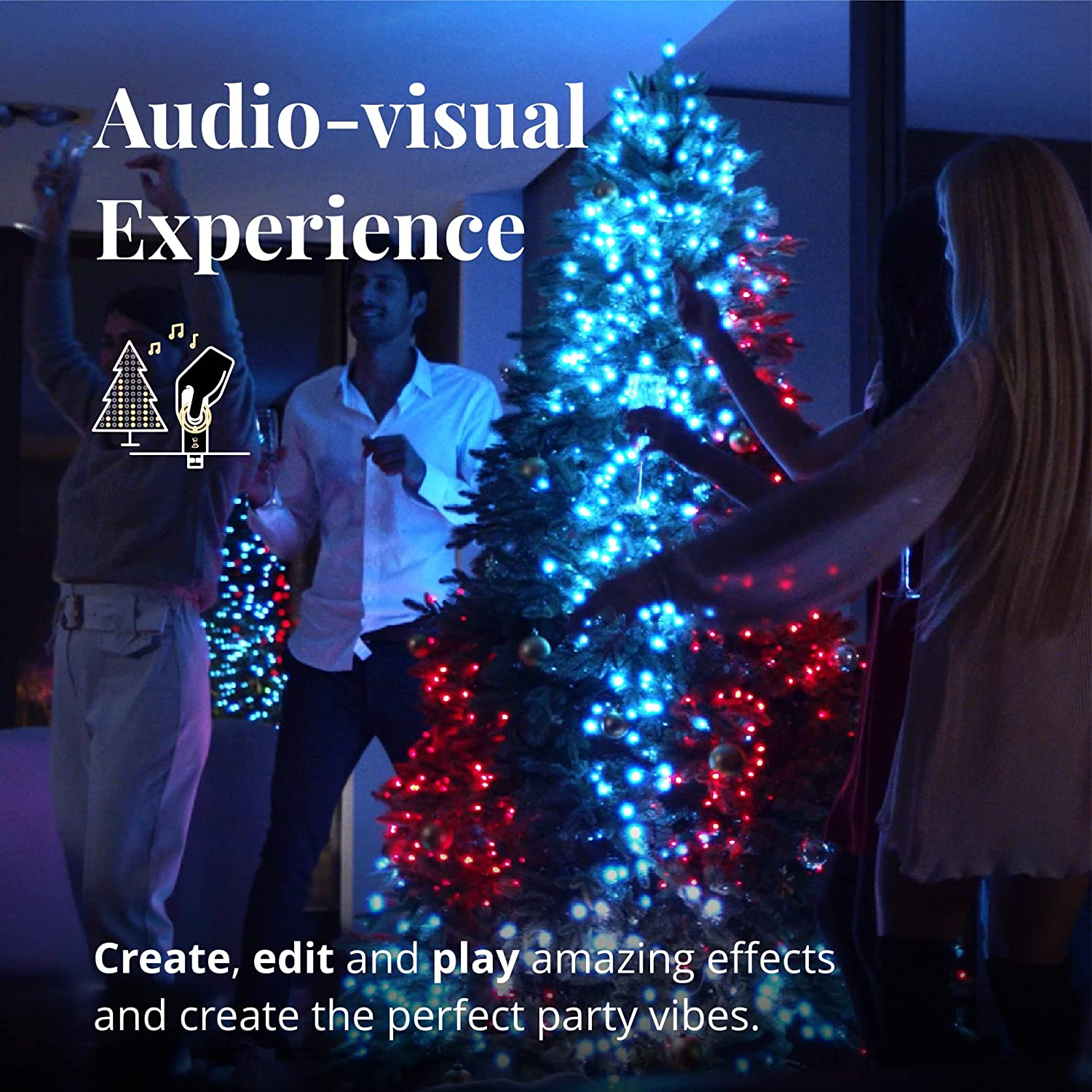 Les algorithmes de pointe de Twinkly Music décodent n'importe quelle source sonore en temps réel, qu'il s'agisse de chansons de Noël classiques ou de musique techno de pointe, pour identifier les éléments musicaux pertinents et donner vie aux effets dans une expérience audiovisuelle combinée.