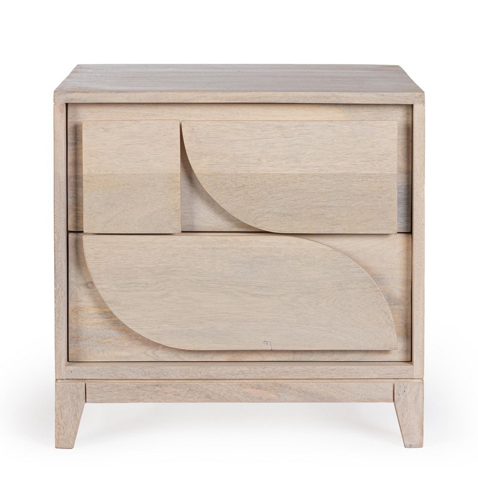 Table de chevet "Archita" pour chambre, structure en bois de manguier, dossier et fond de tiroir en MDF