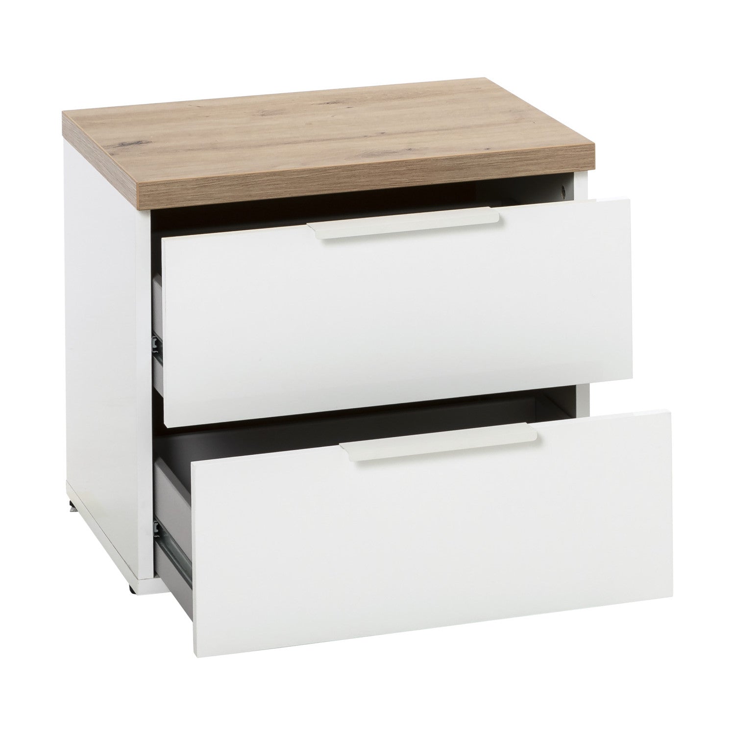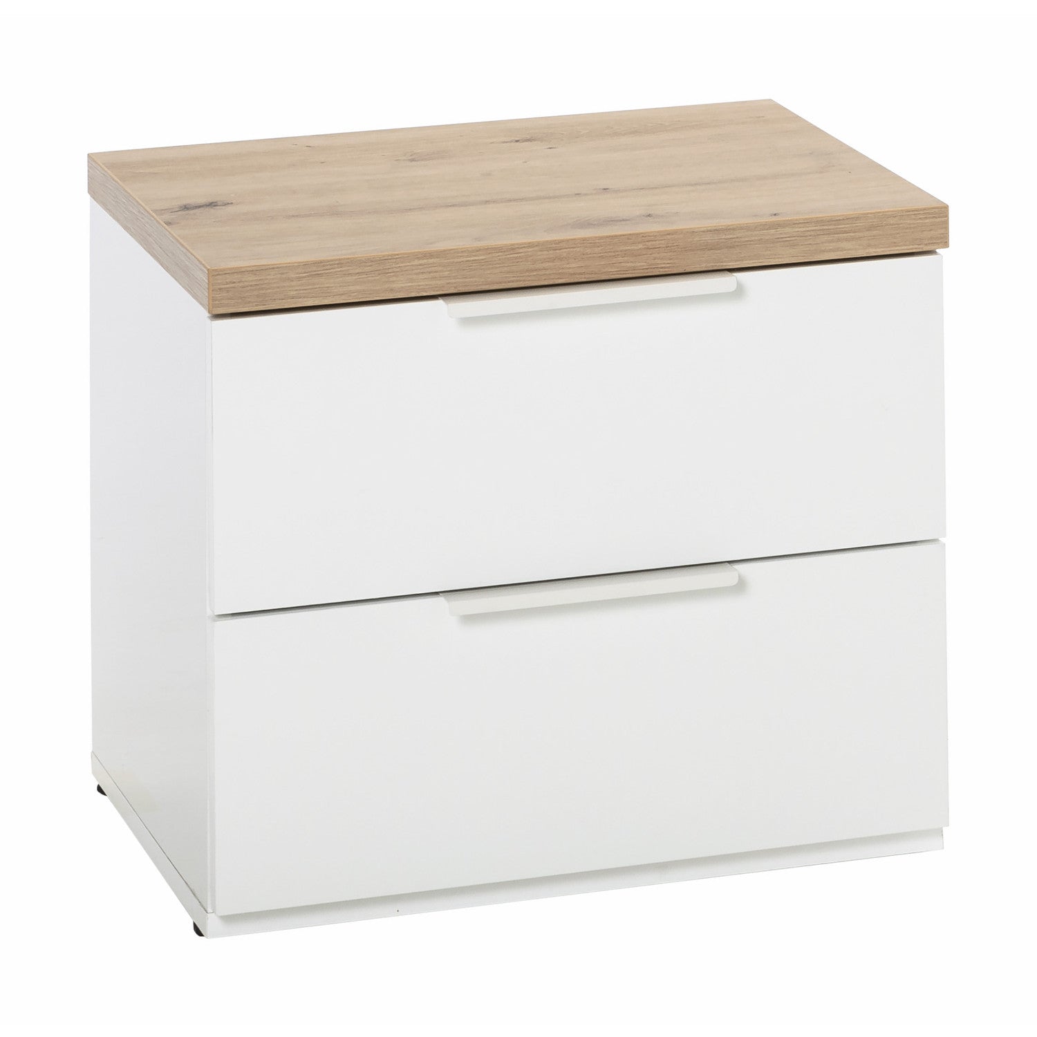 Prix régulier €162,90 Prix réduit €143,90Table de chevet Mundi, avec 2 tiroirs, spacieuse et polyvalente, au design épuré et moderne.