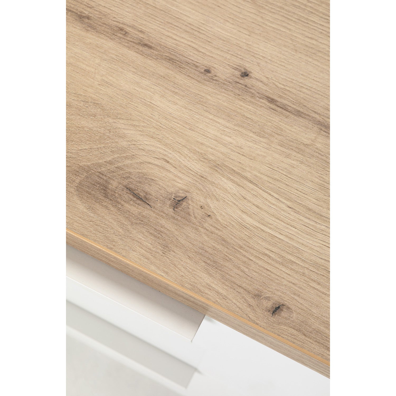 Base supérieure réalisé en Panneau Ecological® mélaminé de 30 mm d'épaisseur avec revêtement en Chêne Riviera Structure interne et étagères réalisé en panneau Ecological® anobli de 16 mm d'épaisseur avec revêtement en mélamine blanche. Poignées fabriqué en métal blanc mat qui garantit une longue résistance à l'usure.