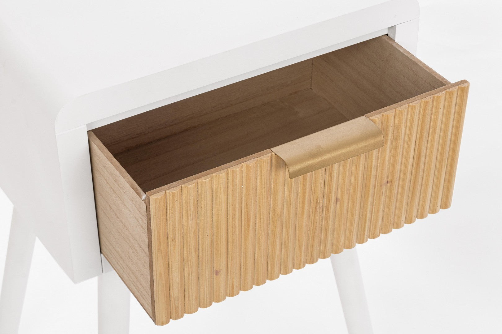 Table de chevet "Charley" pour chambre, structure en MDF, plateau et dossier en MDF