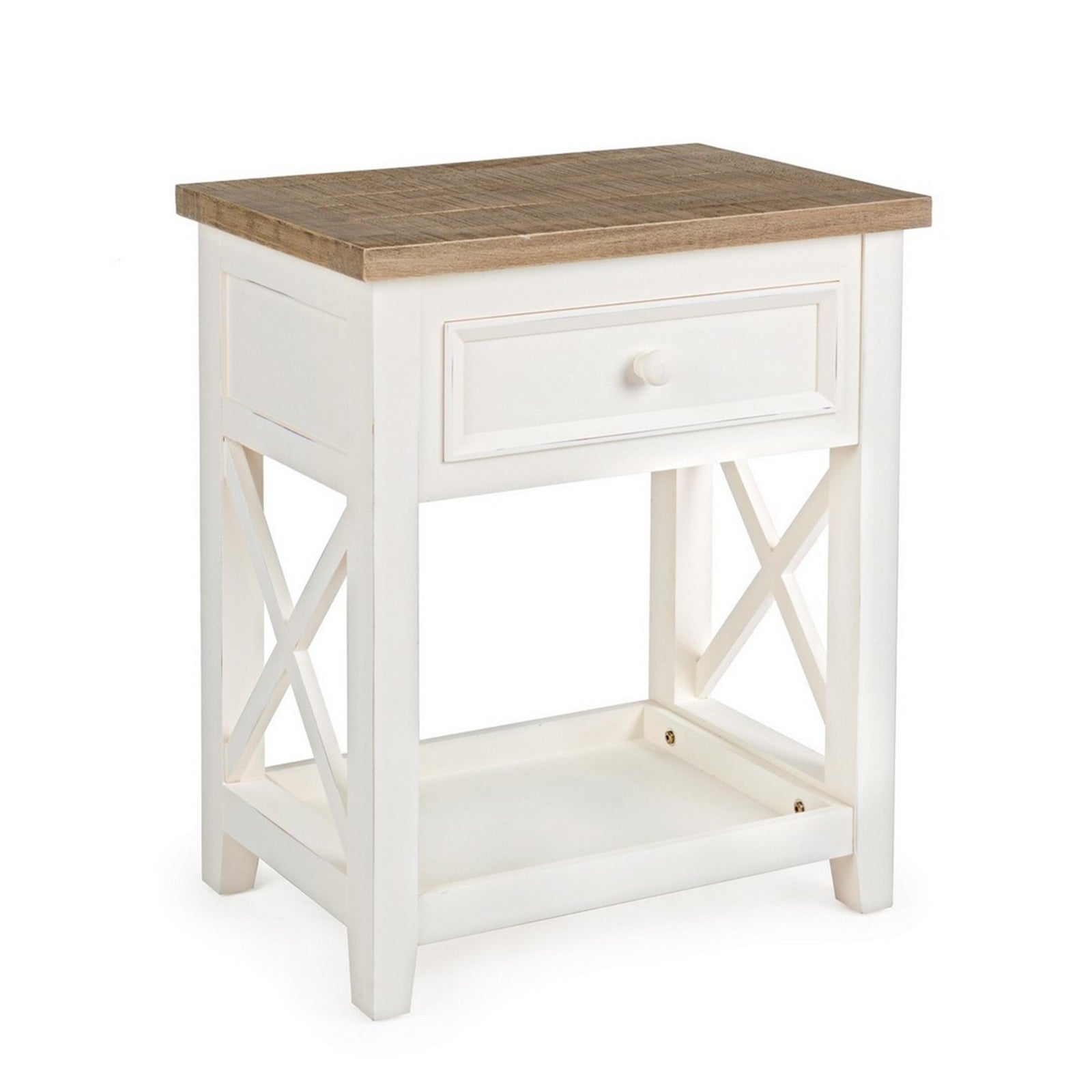 La structure en MDF confère à la table de chevet une solidité et une surface lisse, tandis que le plateau en bois de pin ajoute de la chaleur et une touche naturelle au meuble. Le design de « Elvia » est conçu pour s'adapter à une variété de styles d'ameublement, avec des lignes épurées et une esthétique contemporaine.