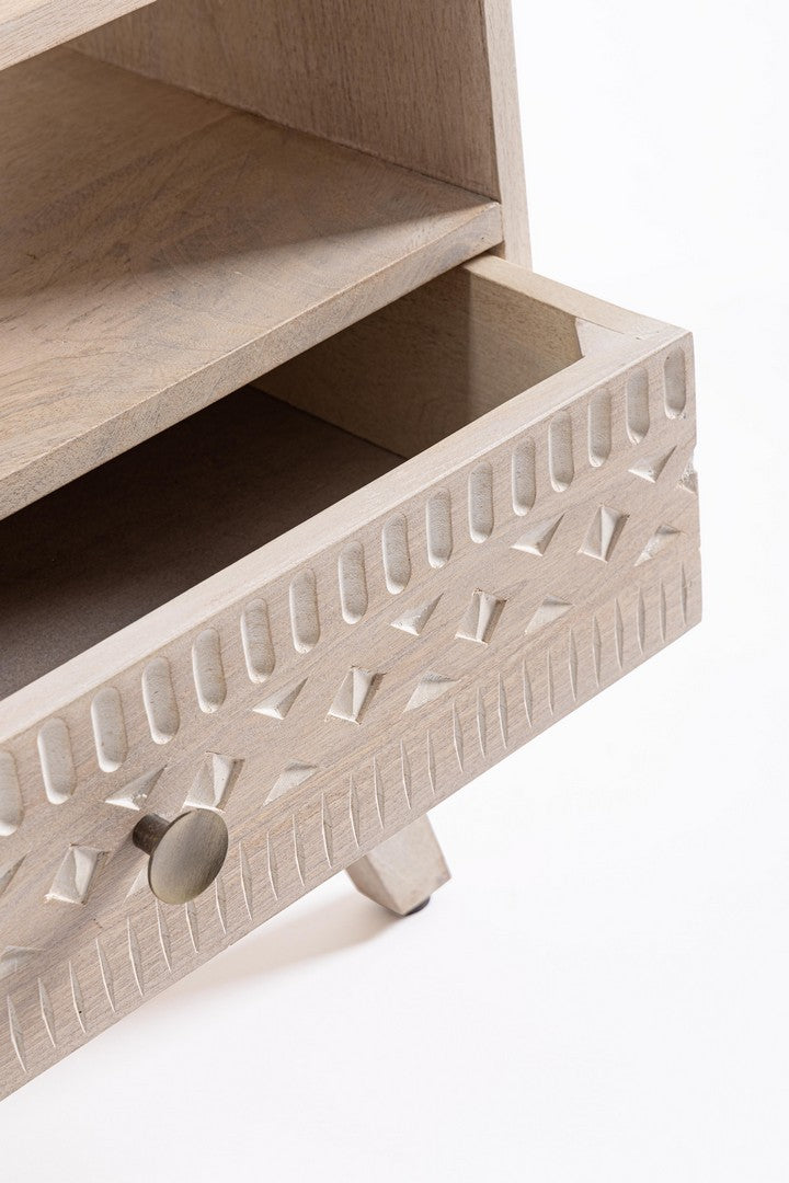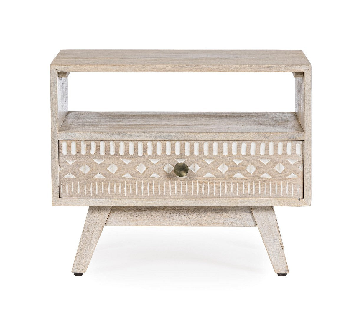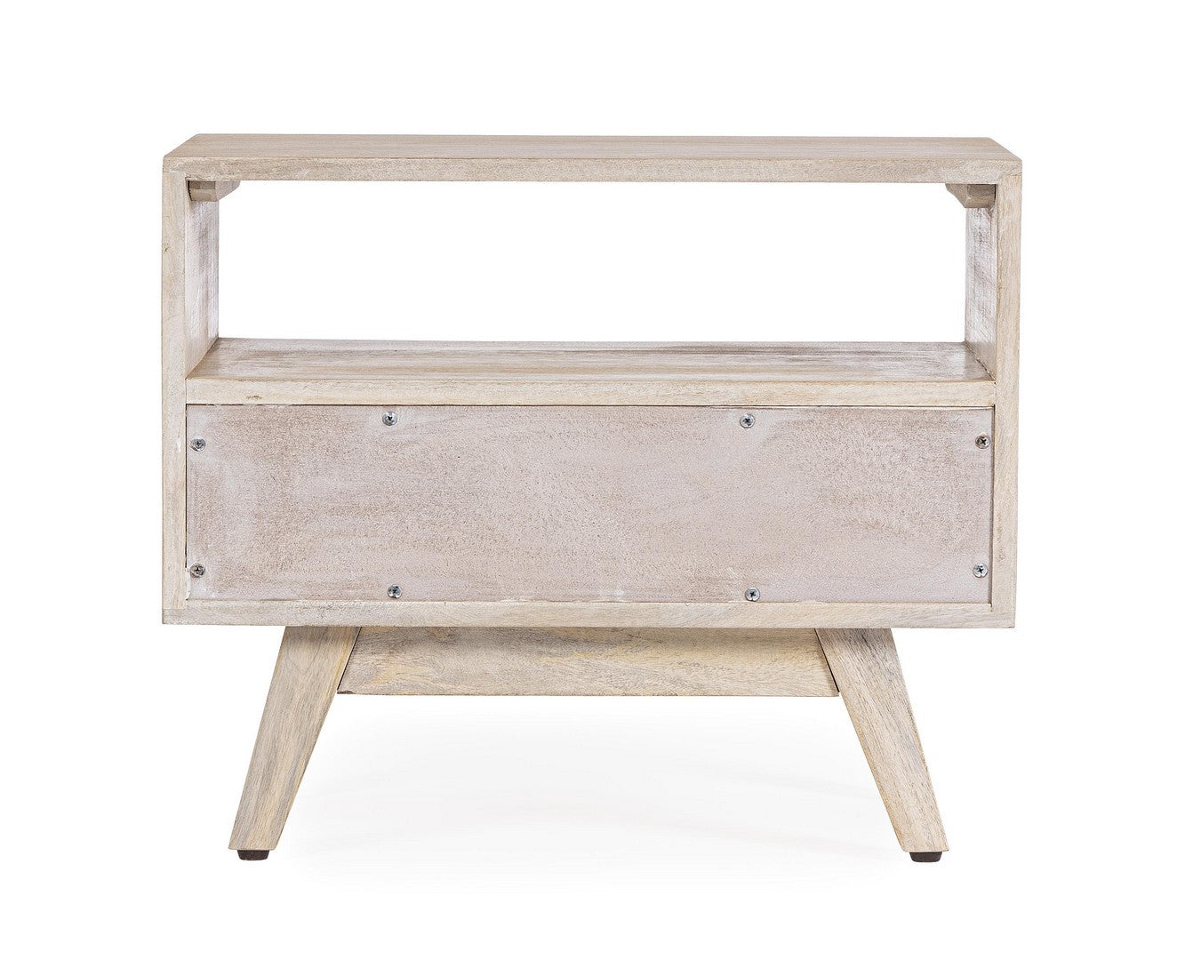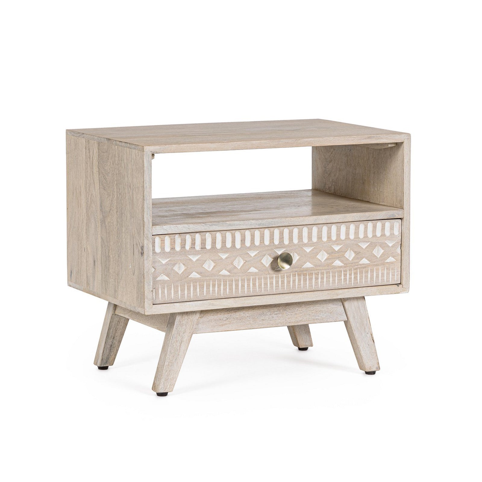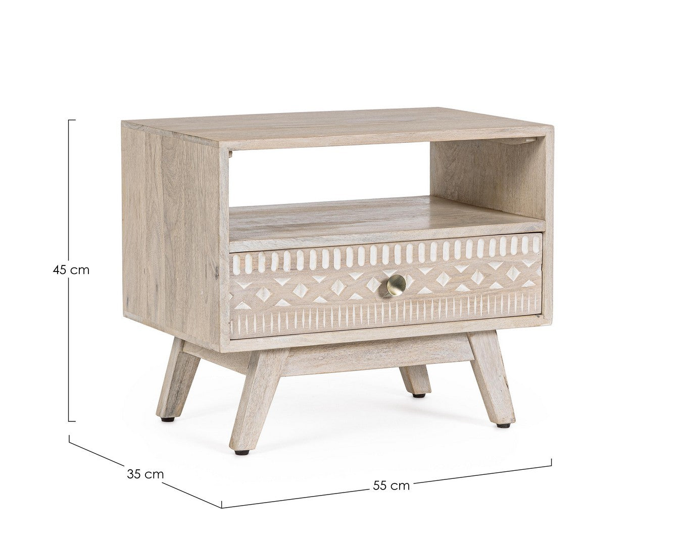 Table de chevet "Indira" pour chambre, structure en manguier, dossier et fond de tiroirs en MDF