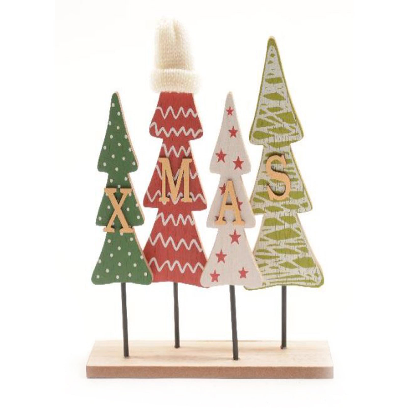 Dans certaines compositions, les arbres peuvent être peints avec des couleurs typiques des fêtes, comme le vert, le blanc et le rouge, ou enrichis de détails dorés et argentés qui ajoutent une touche d'éclat et de fête.