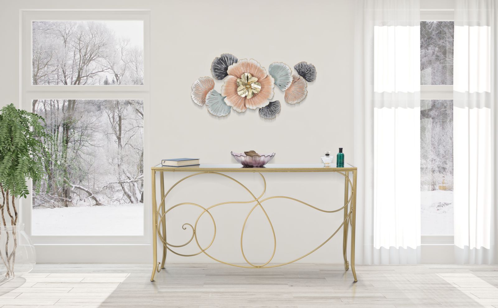 Le métal doré ajoute un élément de luxe et de splendeur, faisant de la console un point focal distinctif dans n'importe quelle pièce.