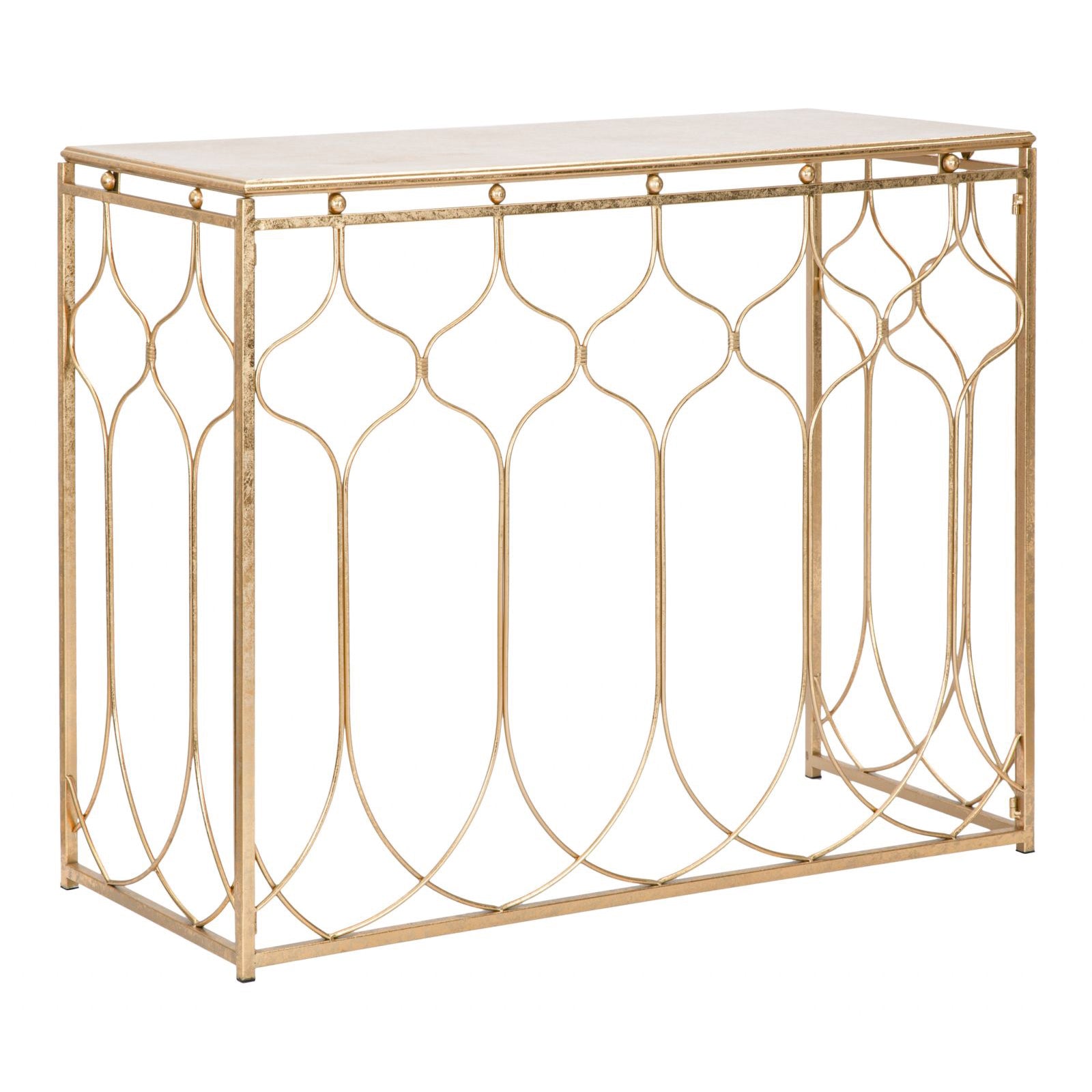 La couleur or contribue à créer une atmosphère luxueuse et sophistiquée, faisant de cette console non seulement pratique mais aussi un élément décoratif à grand impact visuel.