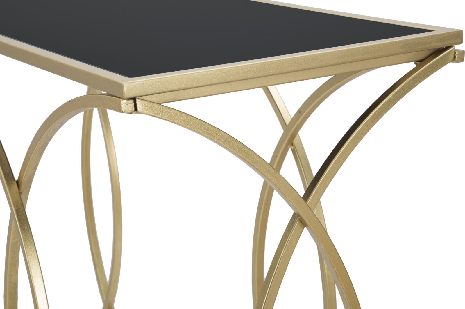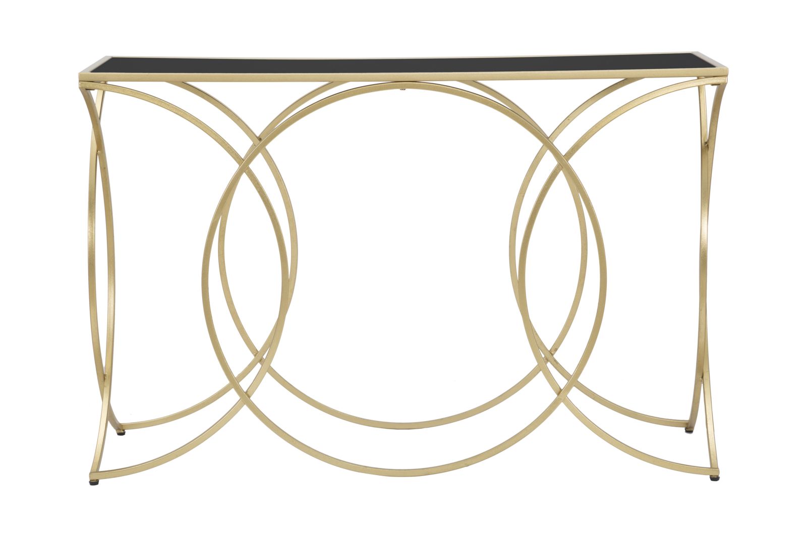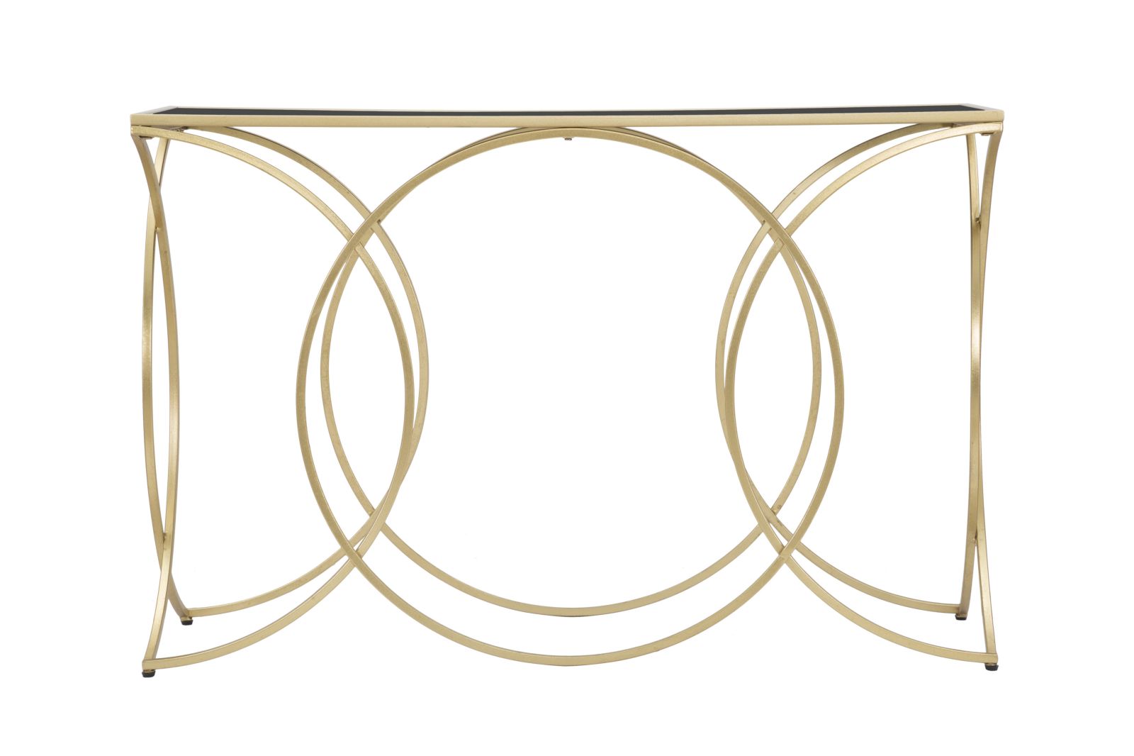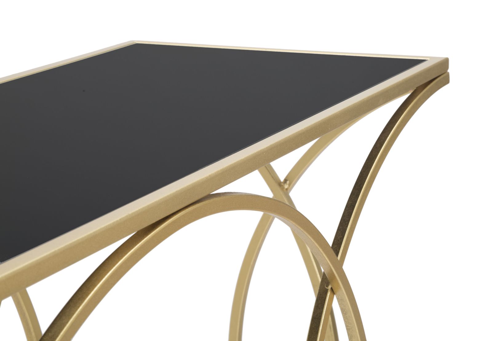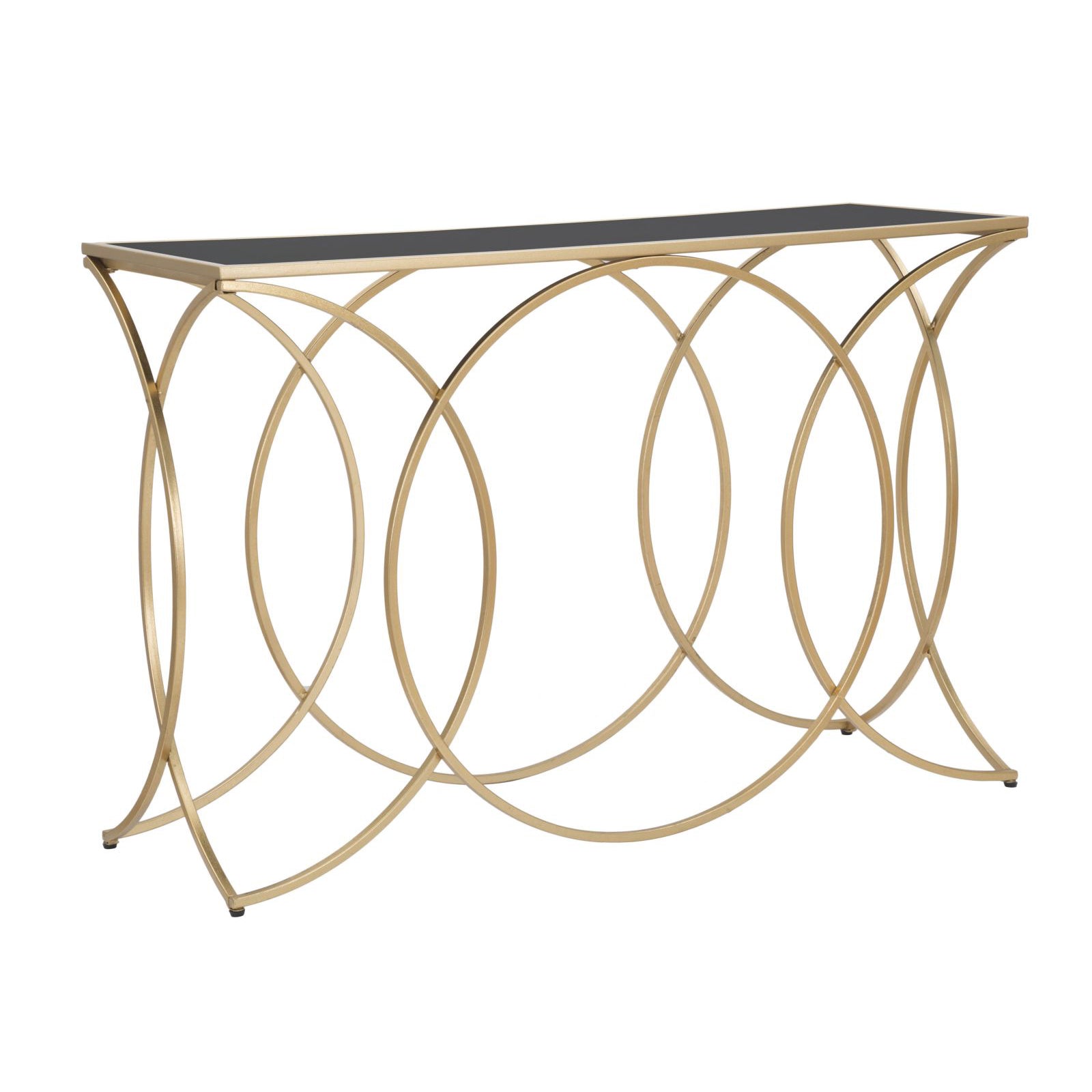 Prix régulier €368,90 Prix réduit €322,90La console avec structure en métal et étagère en verre est un meuble élégant conçu pour un usage intérieur.