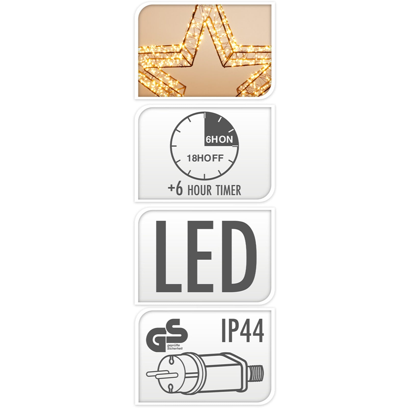 Couronne de Noël en forme d'étoile lumineuse, avec minuterie, pour intérieur et extérieur, avec lumière LED extra chaude