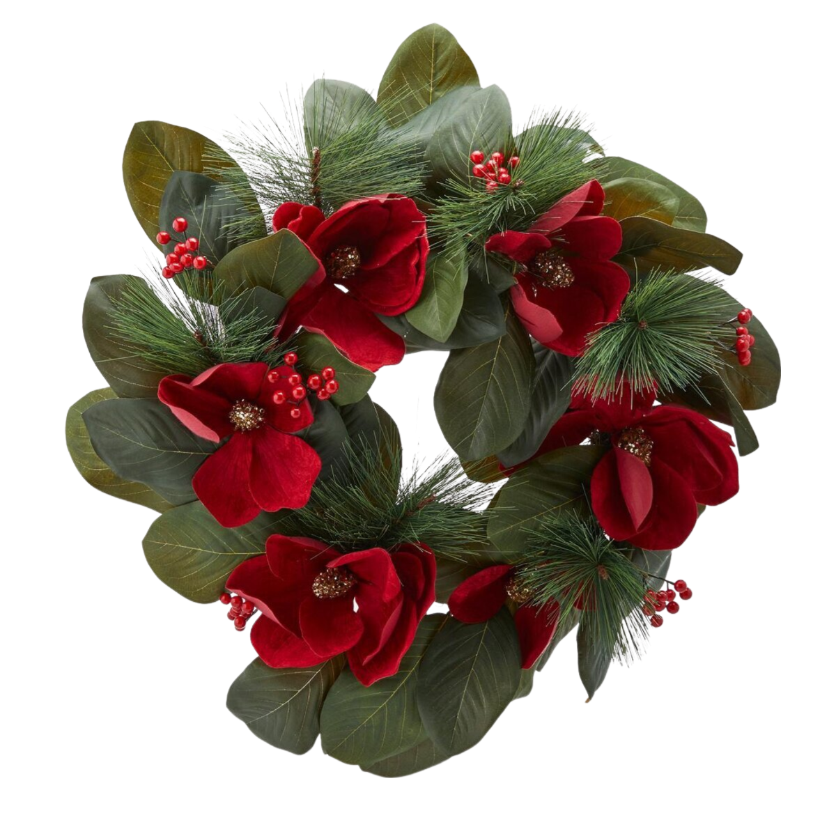Accueillez Noël avec élégance et style avec le nôtre Couronne de Noël avec des fleurs de magnolia couronne décorative en velours.