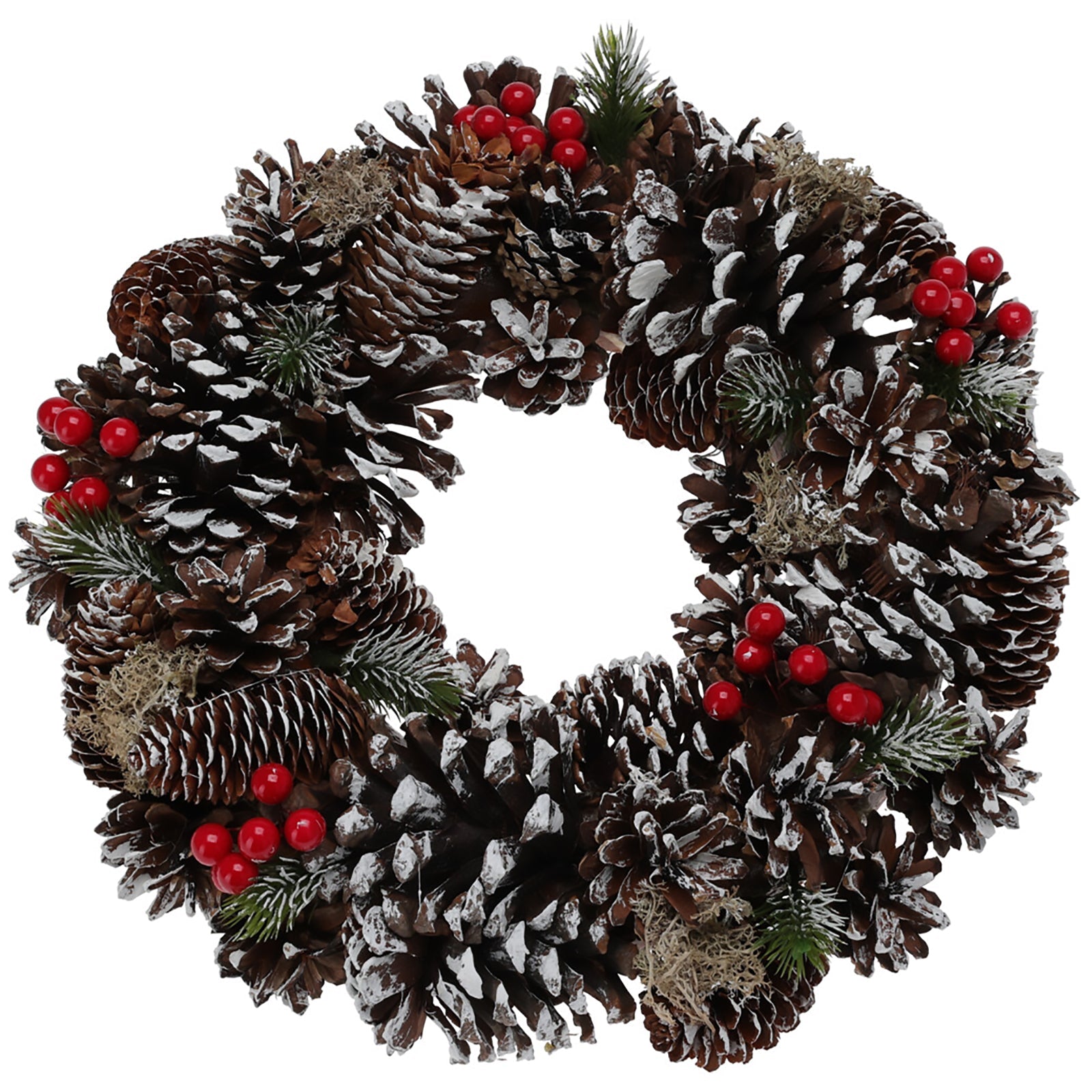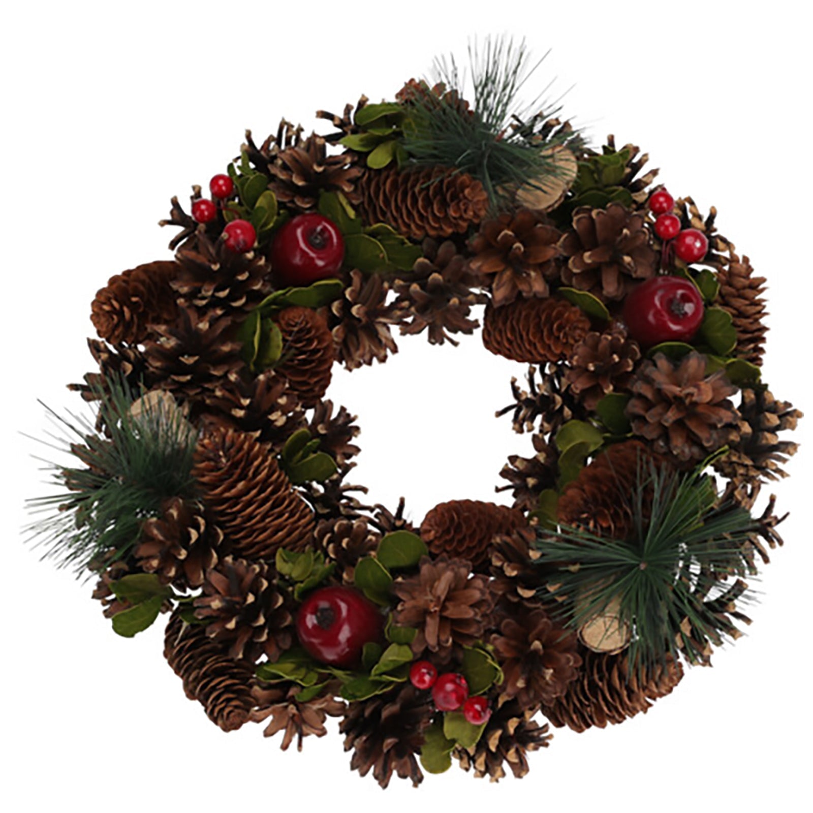 Couronne de Noël décorative avec pommes de pin et baies, idéale comme centre de table de 33 cm