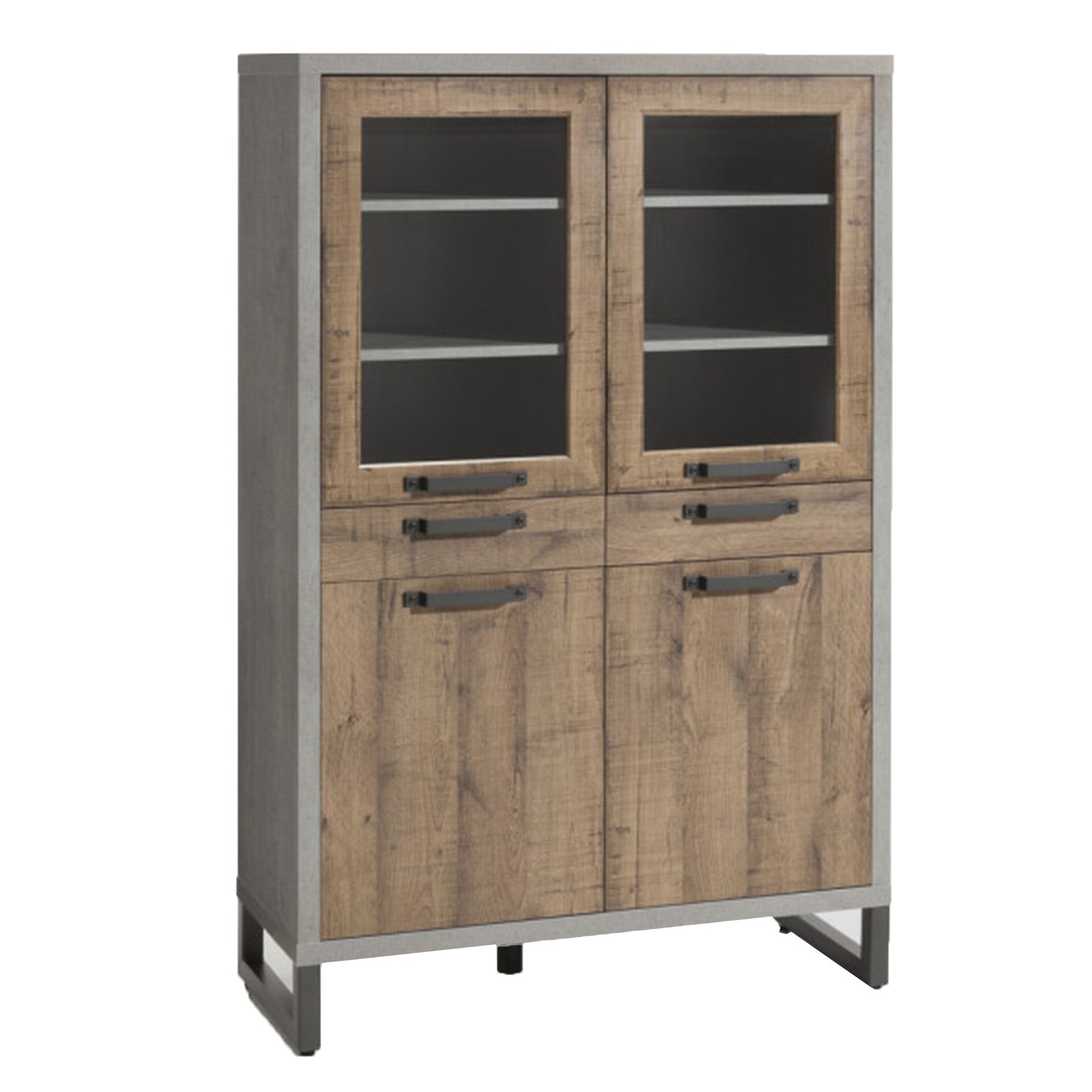 Prix régulier €687,90 Prix réduit €643,90Vitrine LaFabrica Gris béton 2 tiroirs 2 portes vitrées 2 portes chêne vieilli