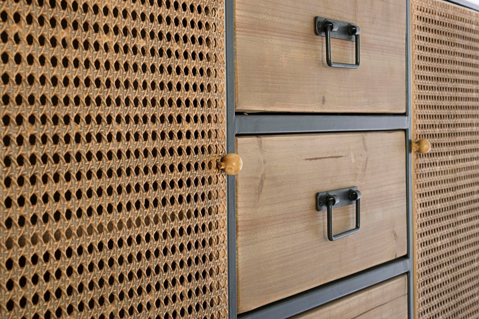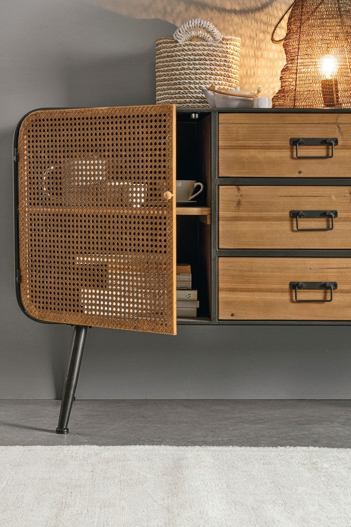 Buffet "Elton" avec structure en acier, tiroirs en bois de sapin, style vintage