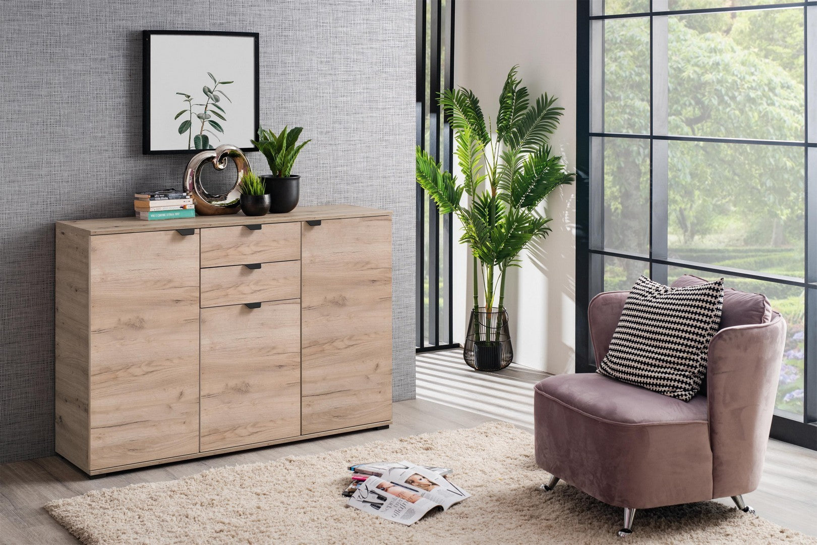 Prix régulier €374,90 Prix réduit €249,90Un meuble spacieux mais compact, utilisez le buffet "Suisse" dans la cuisine ou le salon et vous n'aurez plus jamais de problèmes pour ranger les objets.
