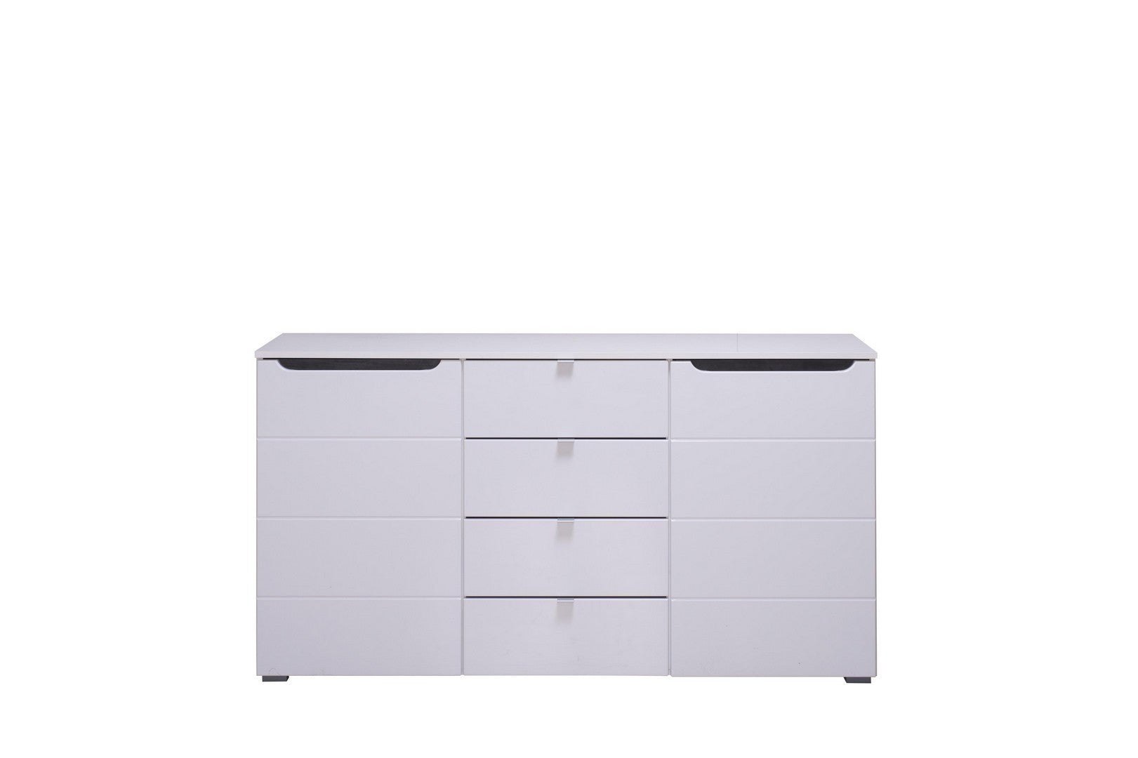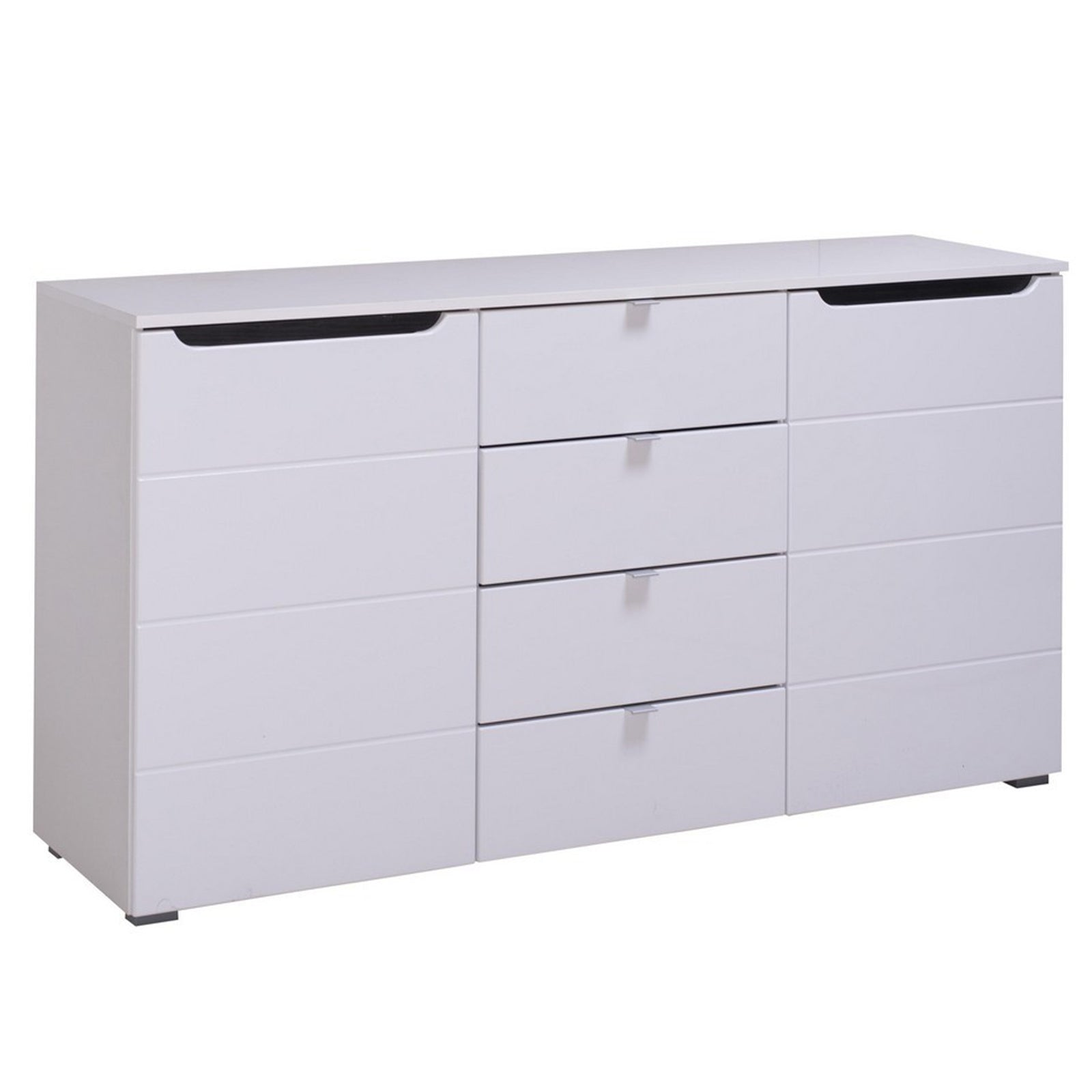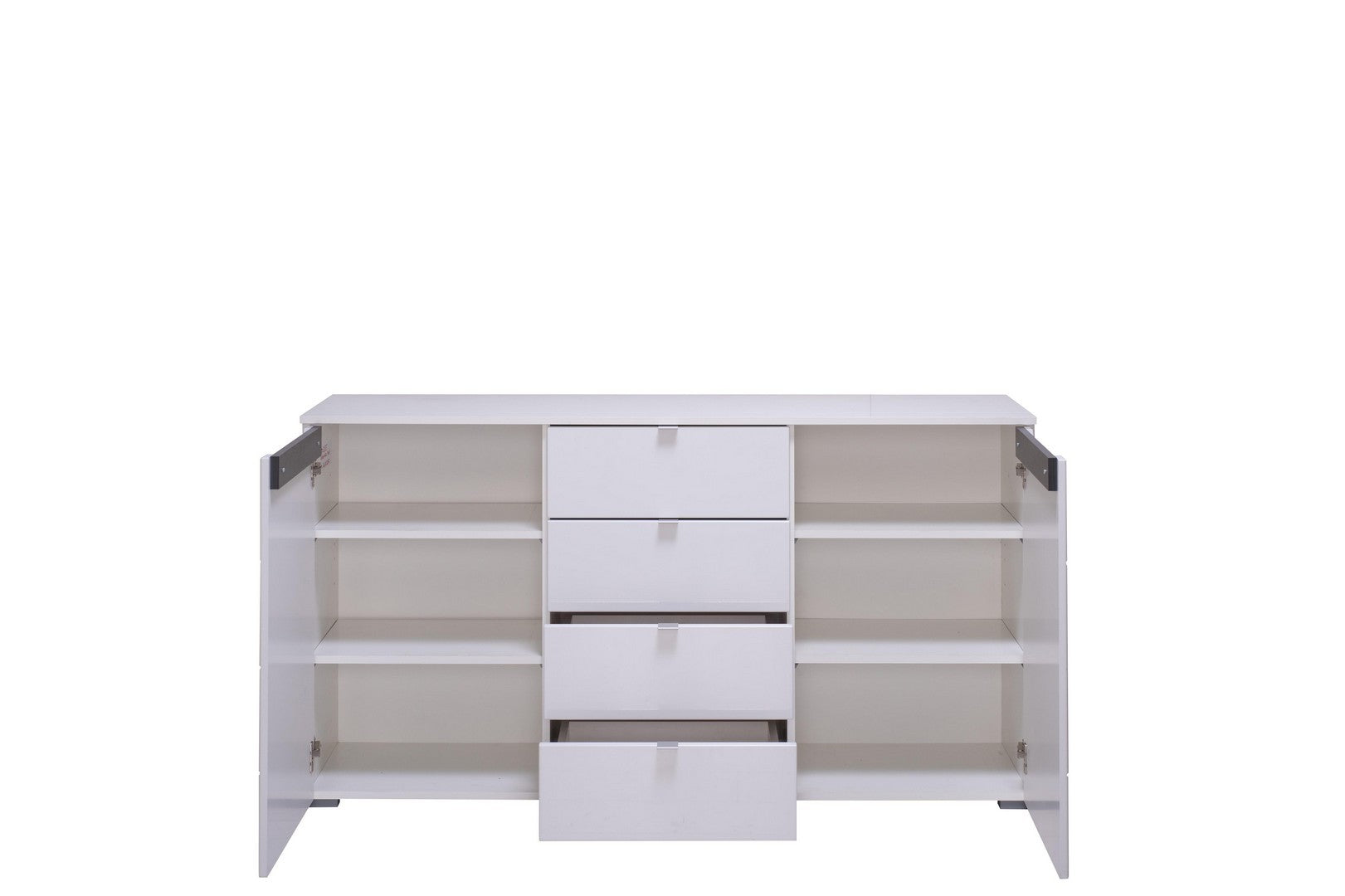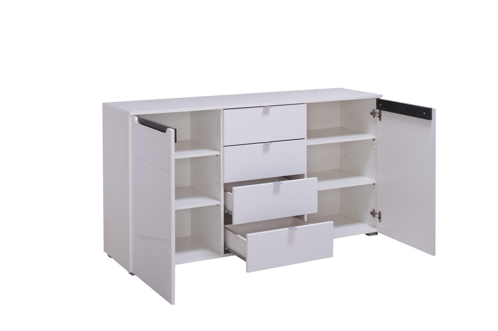 Buffet "Zurich", avec 2 portes et 4 tiroirs, blanc mat, avec structure en aggloméré recouvert, meuble en kit