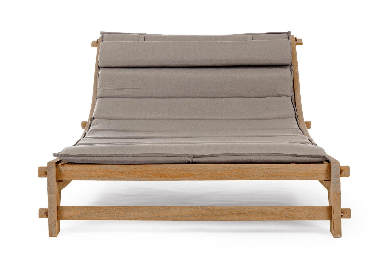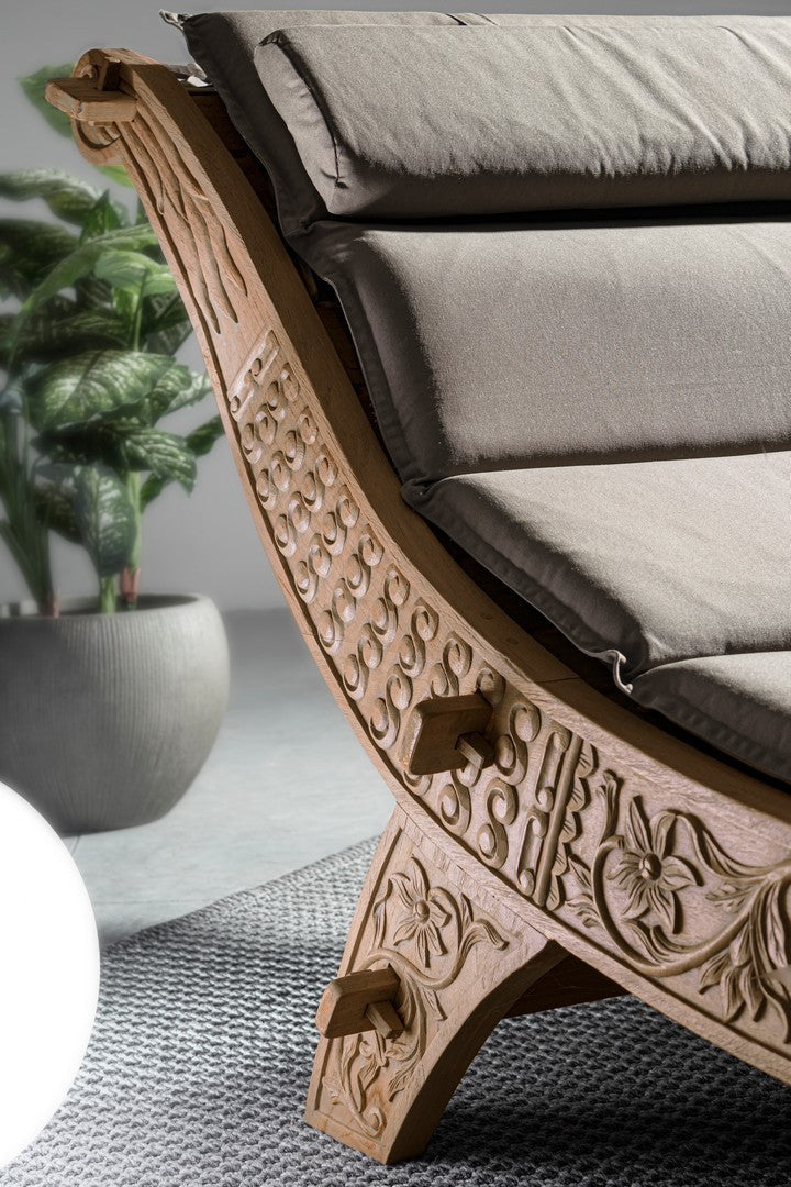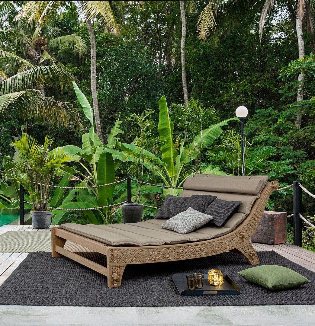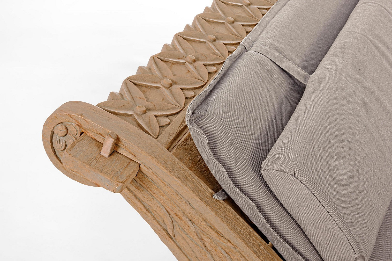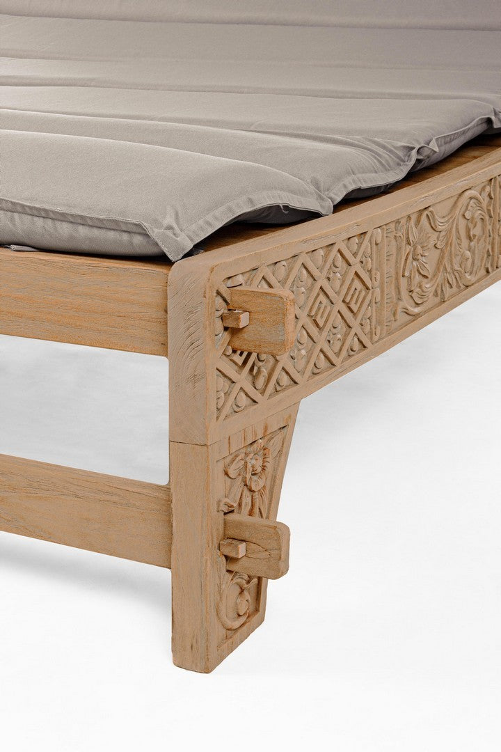 Lit de repos avec coussin "Sanur" en bois de Teck finition sable, pour usage extérieur