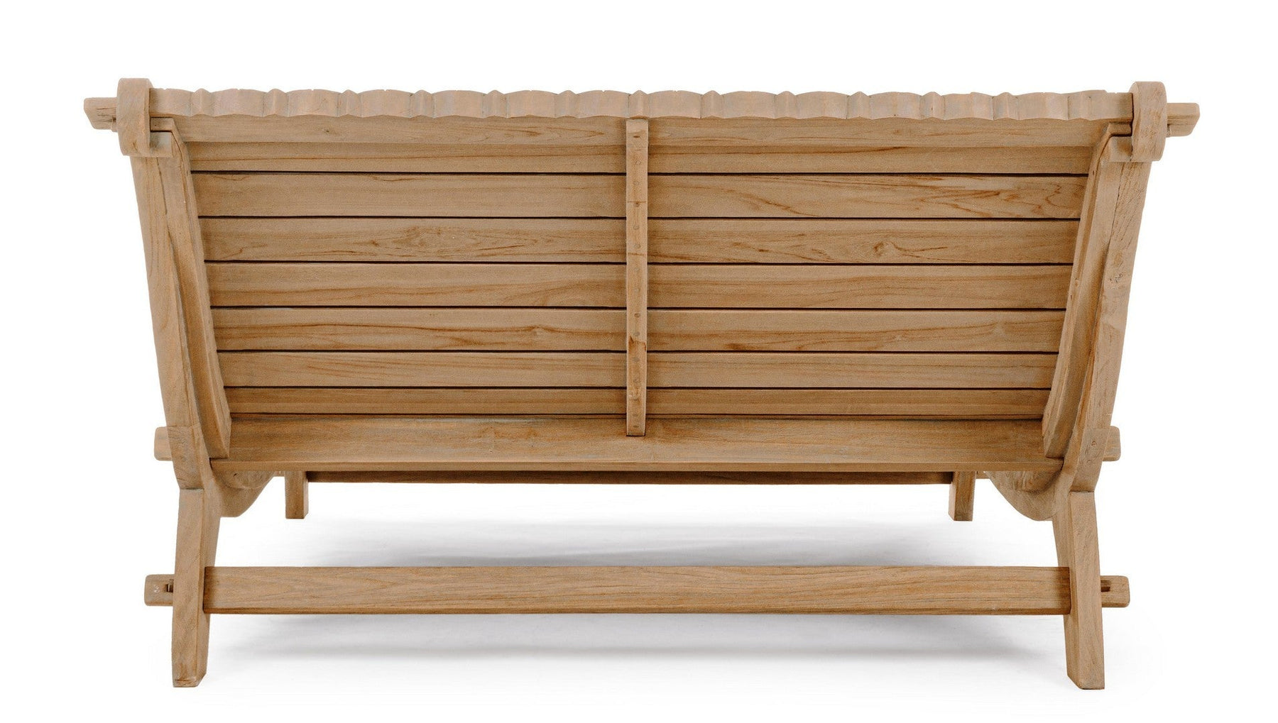 • Bois de teck 100 % FSC, finition sablée à l'eau et vieillie. côtés savamment incrustés à la main.