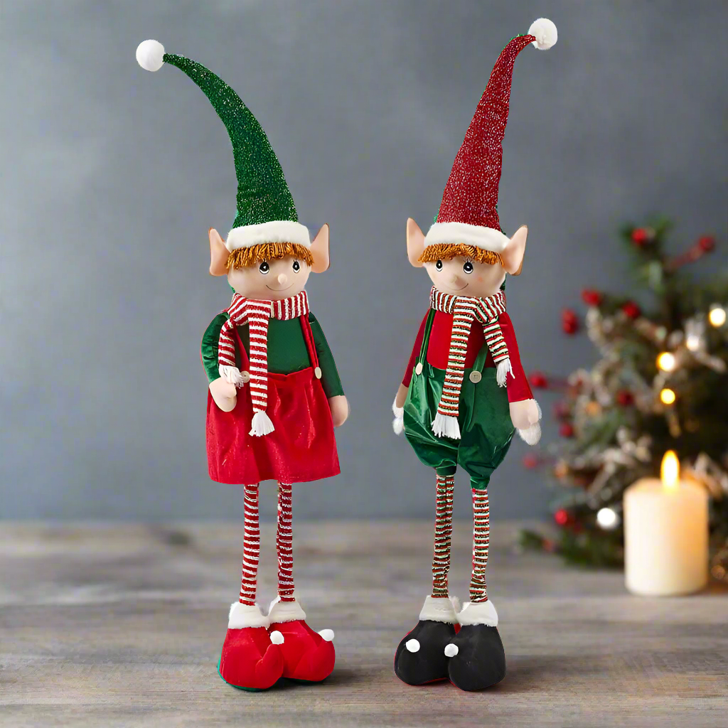 L'elfe est vêtu d'une robe en tissu rouge vif, exprimant la chaleur et la tradition de Noël. Le tissu peut être enrichi de détails tels que des broderies, des coutures contrastées ou de petits accessoires décoratifs, qui rendent l'elfe encore plus fascinant et plein de personnalité.