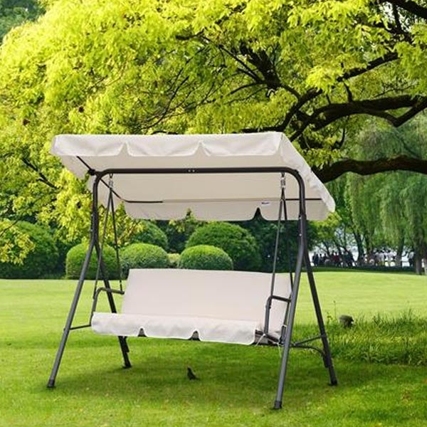 Balançoire de jardin et balançoire de véranda 3 places Beige "Amantea" 170 cm