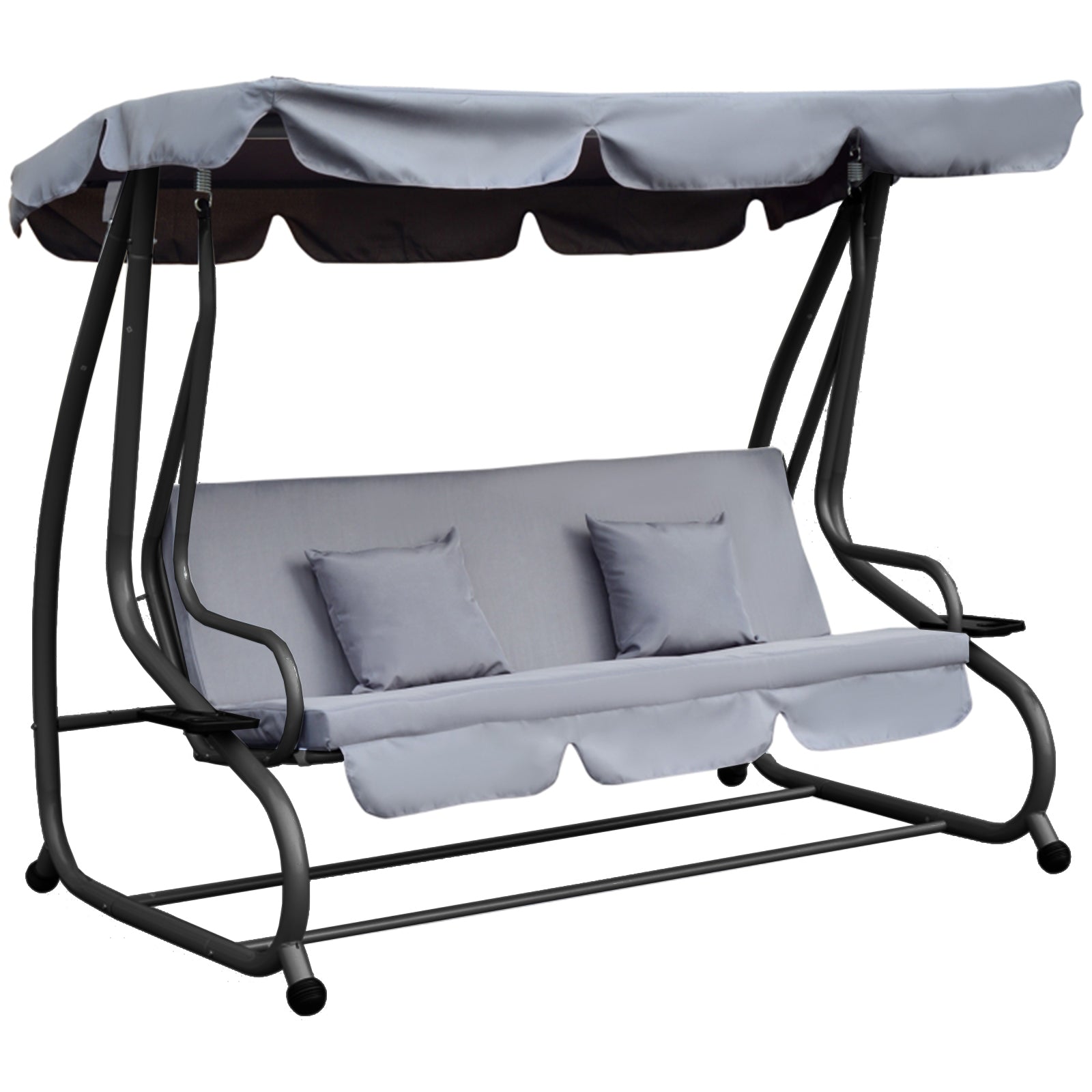 Prix régulier €348,90 Prix réduit €293,90Balançoire 3 places en fer thermolaqué. Assise et dossier inclinables en tissu polyester gris, complet avec auvent et coussins. Conception fabriquée en Italie