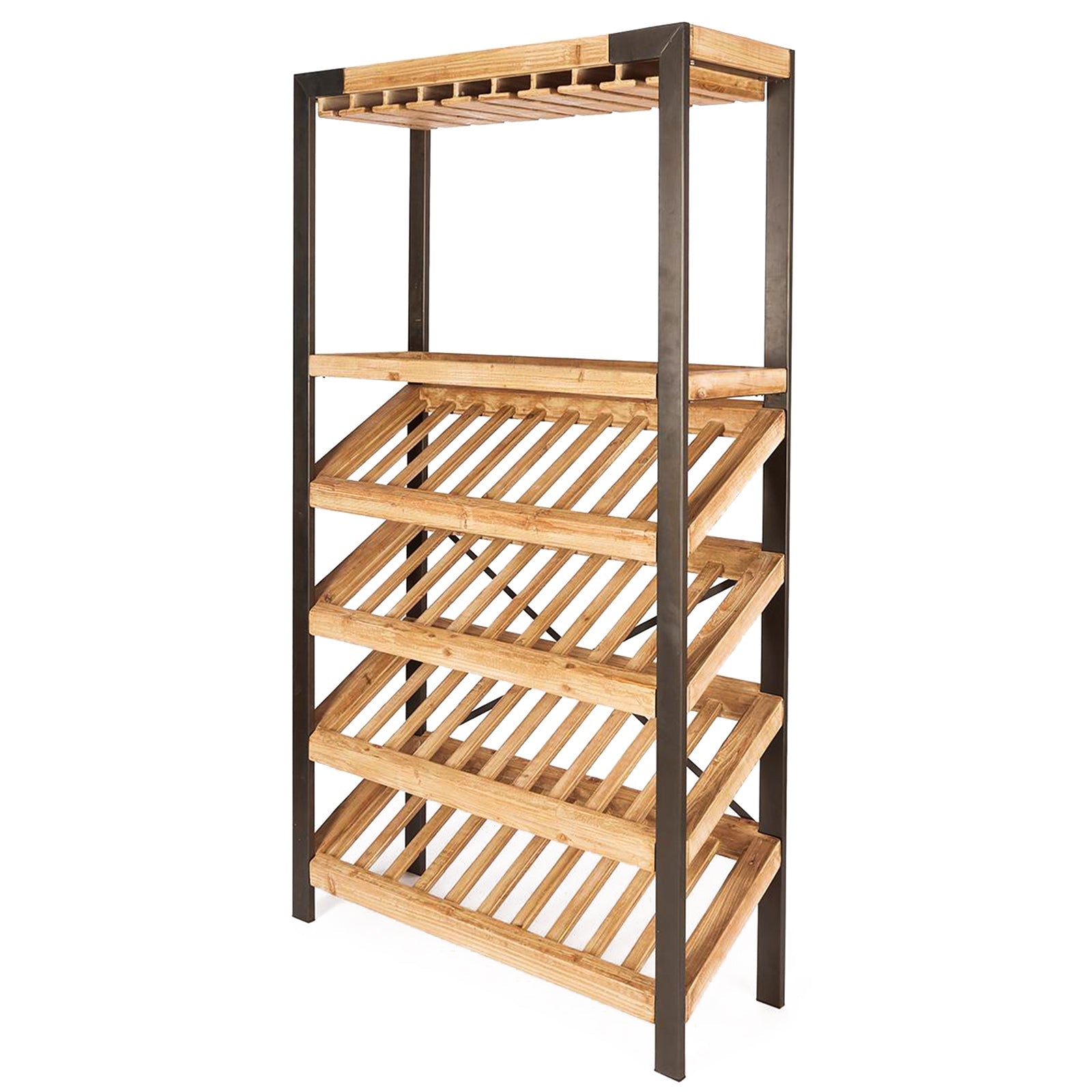 Prix régulier €1.249,90 Prix réduit €1.181,90Cave à vin en bois de sapin et métal comprenant 5 étagères conçues pour accueillir bouteilles de vin et verres.