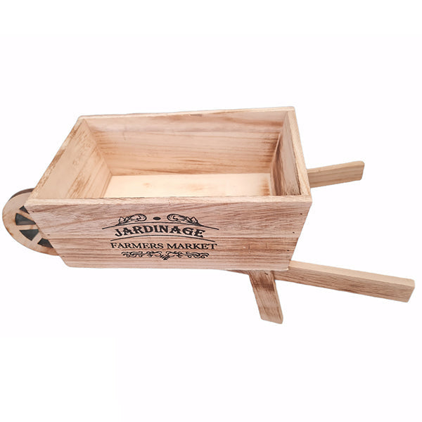 Prix régulier €13,90 Prix réduit €7,90Jardinière brouette en bois avec roue et jardinière, design très pratique et décoratif, idéale pour le jardin ou le balcon