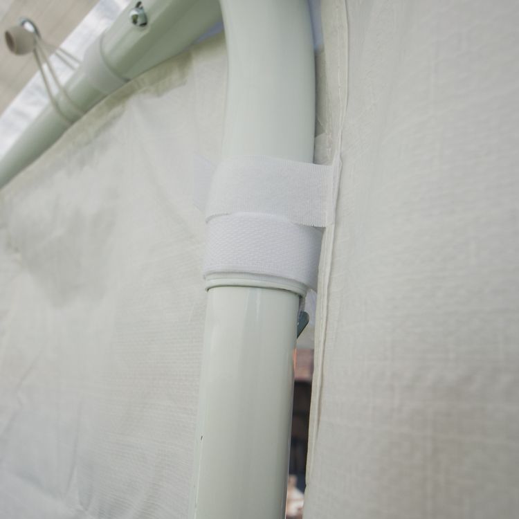 Il est également possible de positionner le gazebo contre un mur, grâce également aux rideaux latéraux que vous pourrez régler à votre guise.