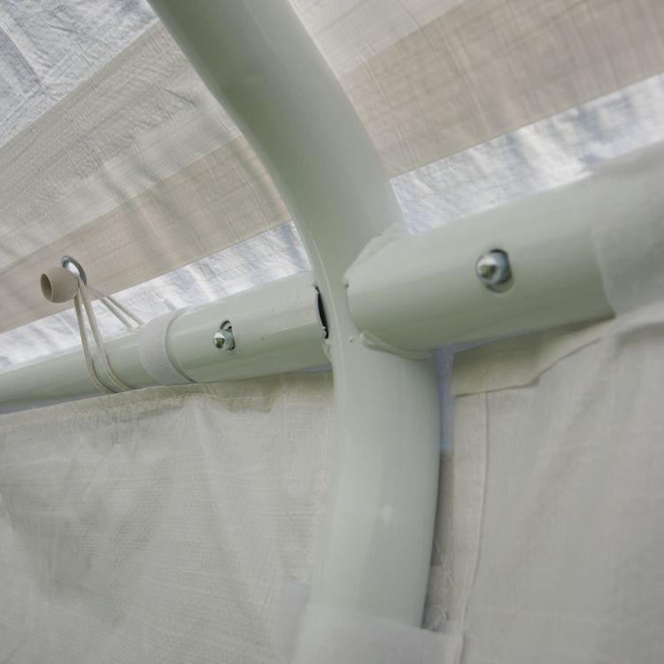 Le gazebo est équipé d'une structure en tube d'acier solide, facile à monter et à démonter en suivant les instructions ci-jointes. En cas de fortes tempêtes et de rafales de vent, nous vous conseillons de ne pas utiliser la tonnelle et de la démonter pour éviter tout dommage.