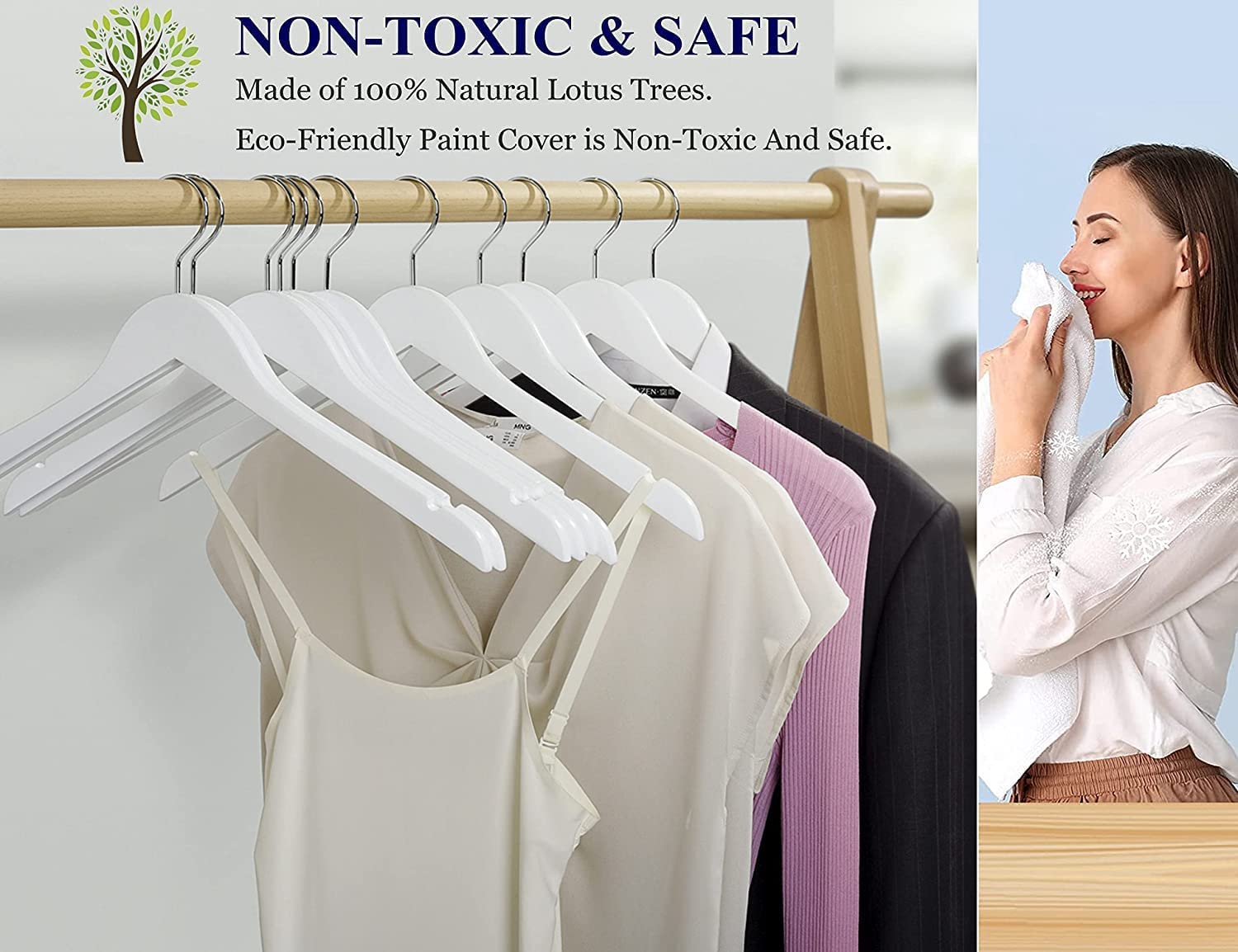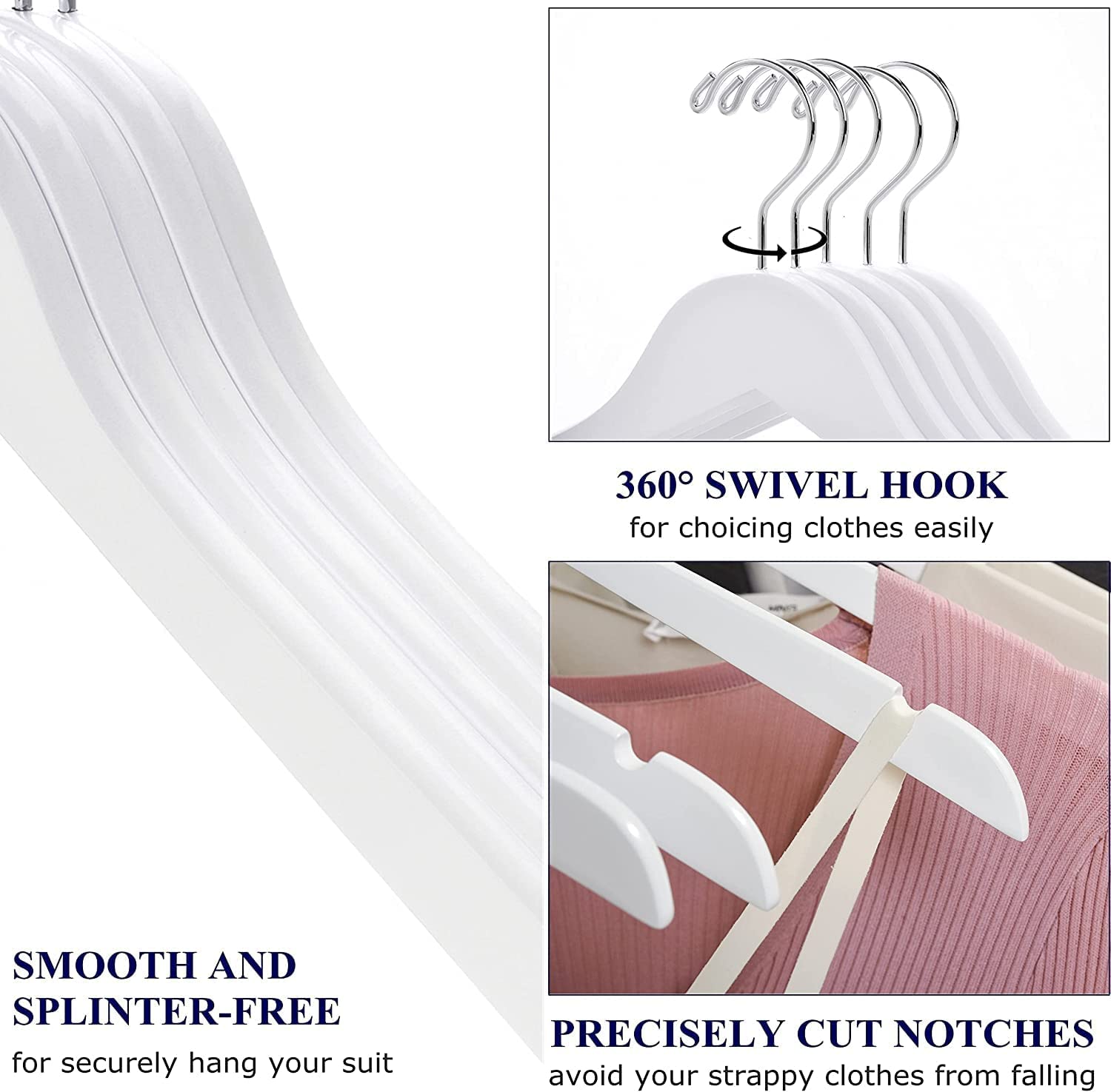 Fabriqué à partir de bois qui a été poli et verni pour obtenir une finition lisse à grain fin, cet ensemble de cintres de couleur bois blanc naturel est non seulement résistant et durable, mais il fournira également un support permanent pour vos pantalons, chemises, manteaux, vestes et jeans épais.