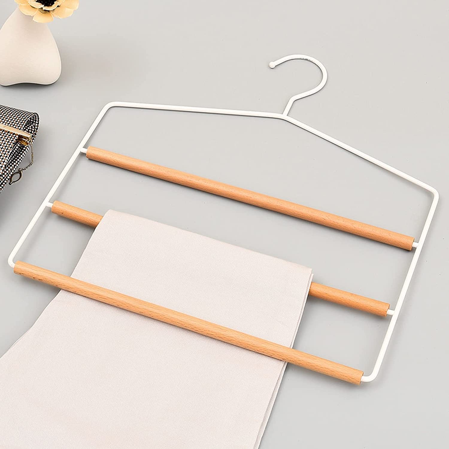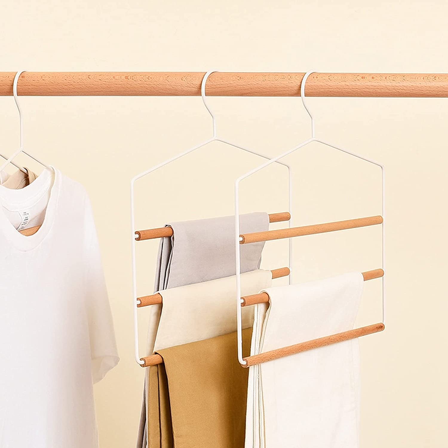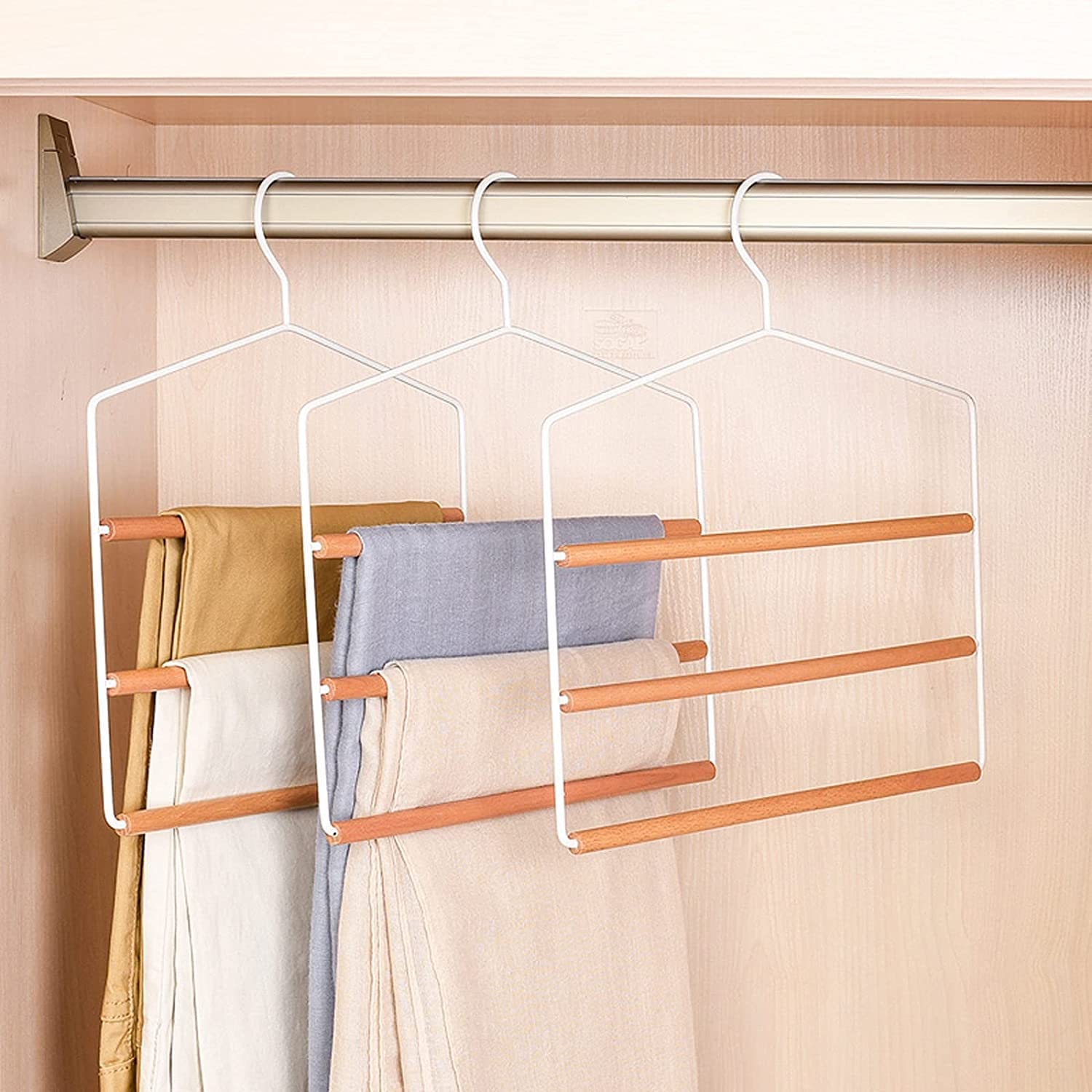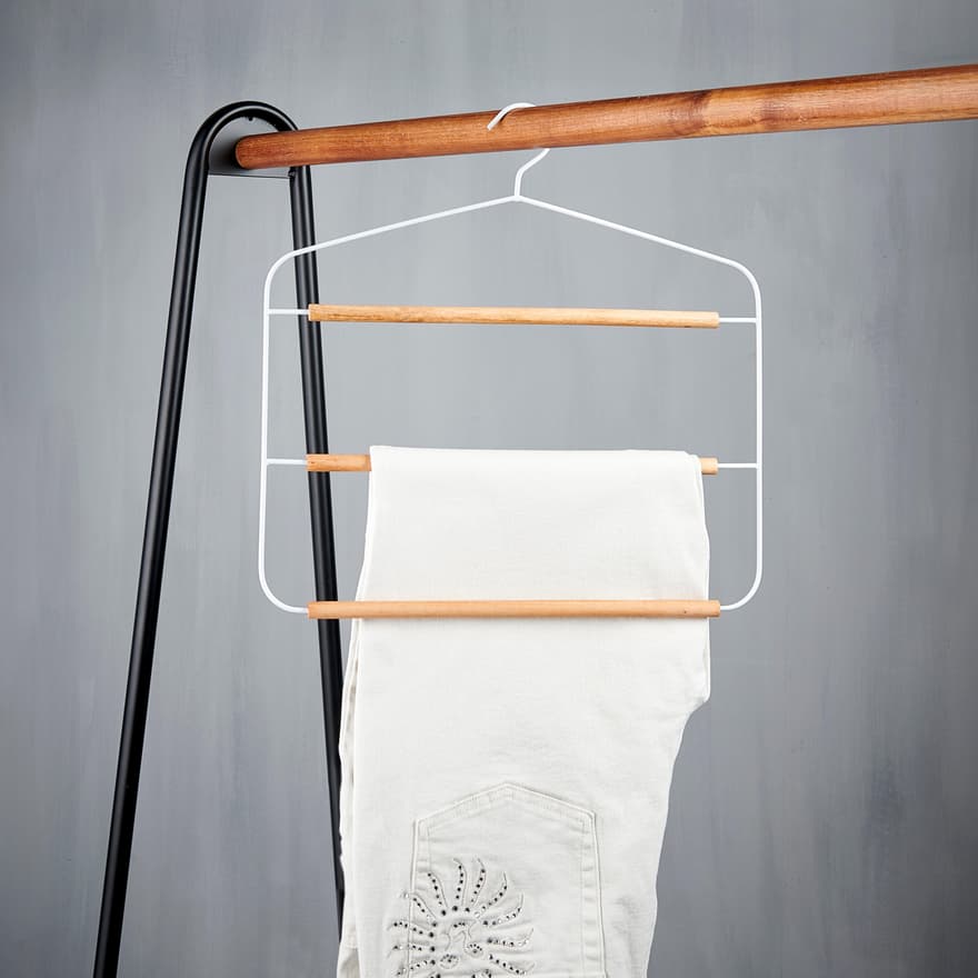 Pantalons, jeans, cravates et foulards peuvent être accrochés proprement aux 3 cintres sans les froisser.