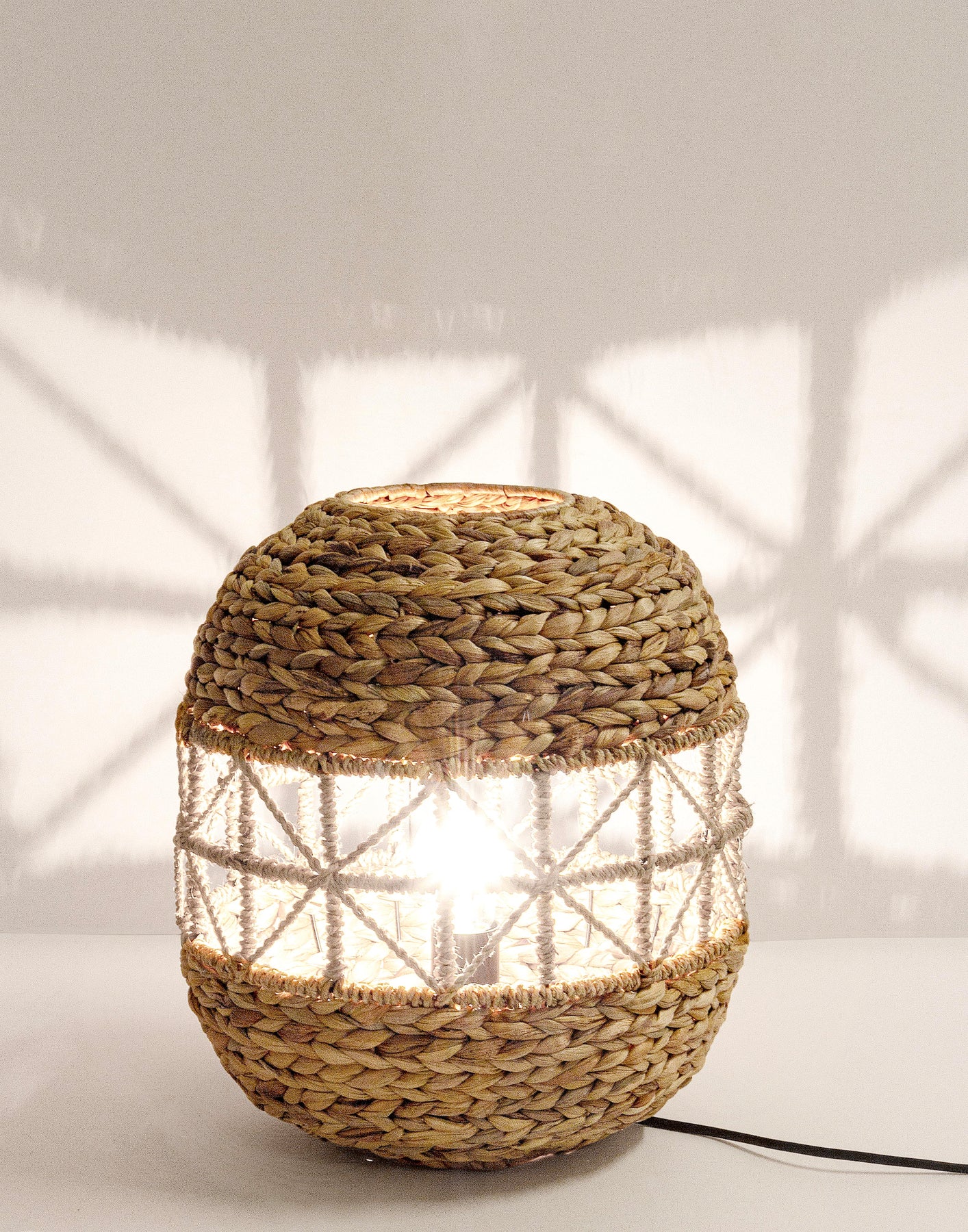 Lampe de table "Shantel" en métal, sisal et jacinthe d'eau D 31 cm