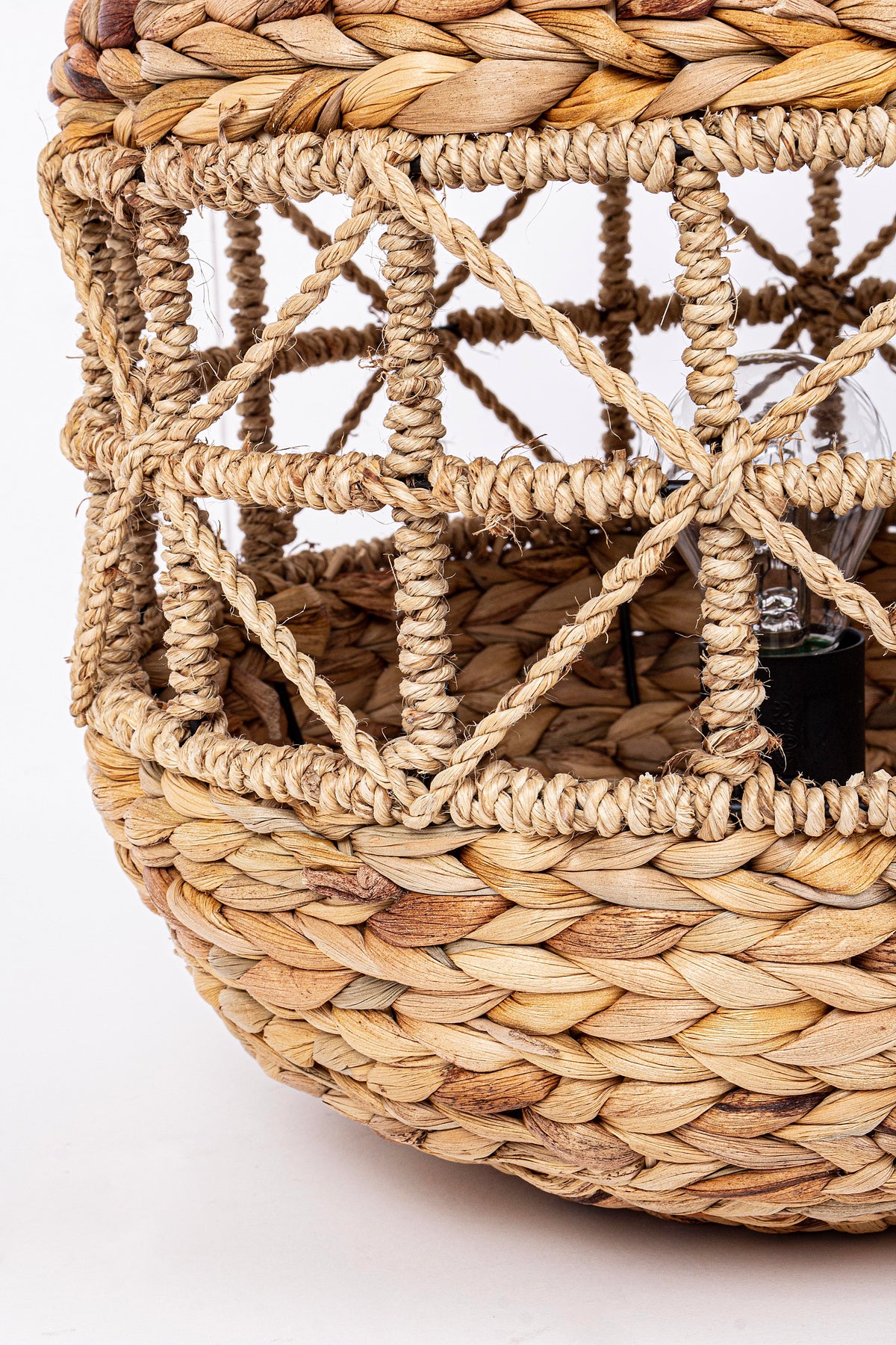 La lampe "Shantel" est une fusion créative de métal , sisal , Et jacinthe d'eau. Le diamètre de 31 cm en fait un choix polyvalent pour différents espaces.