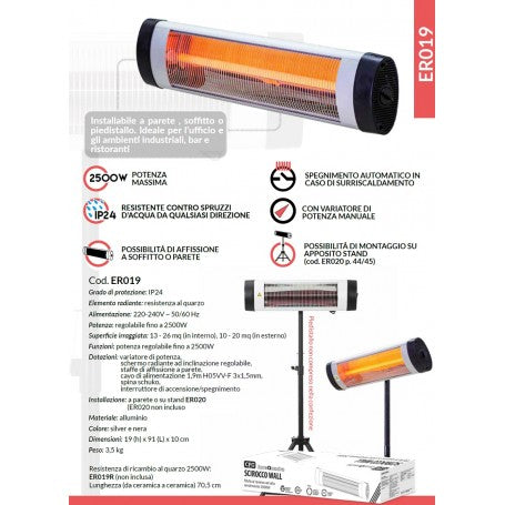 Lampe radiante à quartz "Scirocco", poêle d'extérieur pour bars et restaurants 2500 W