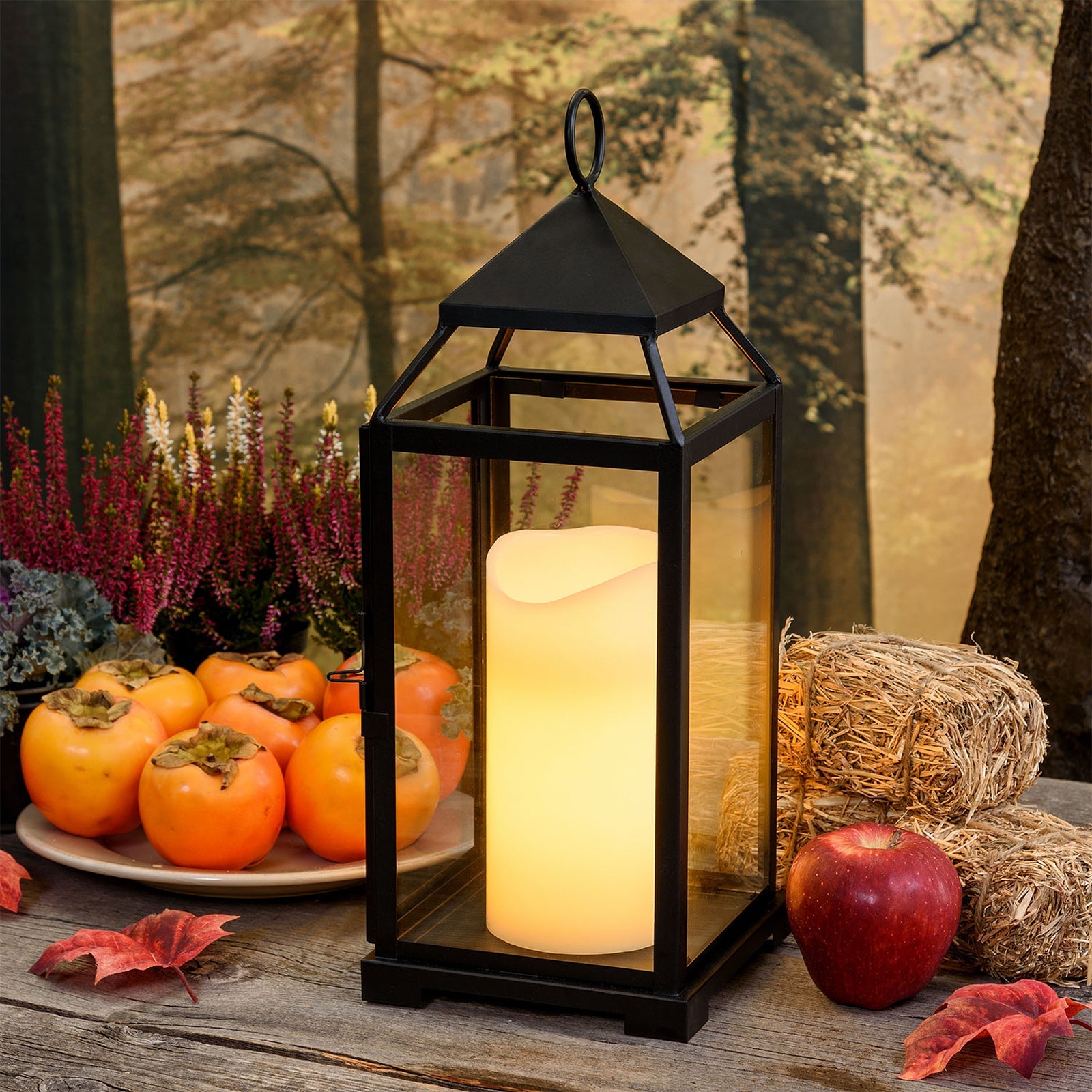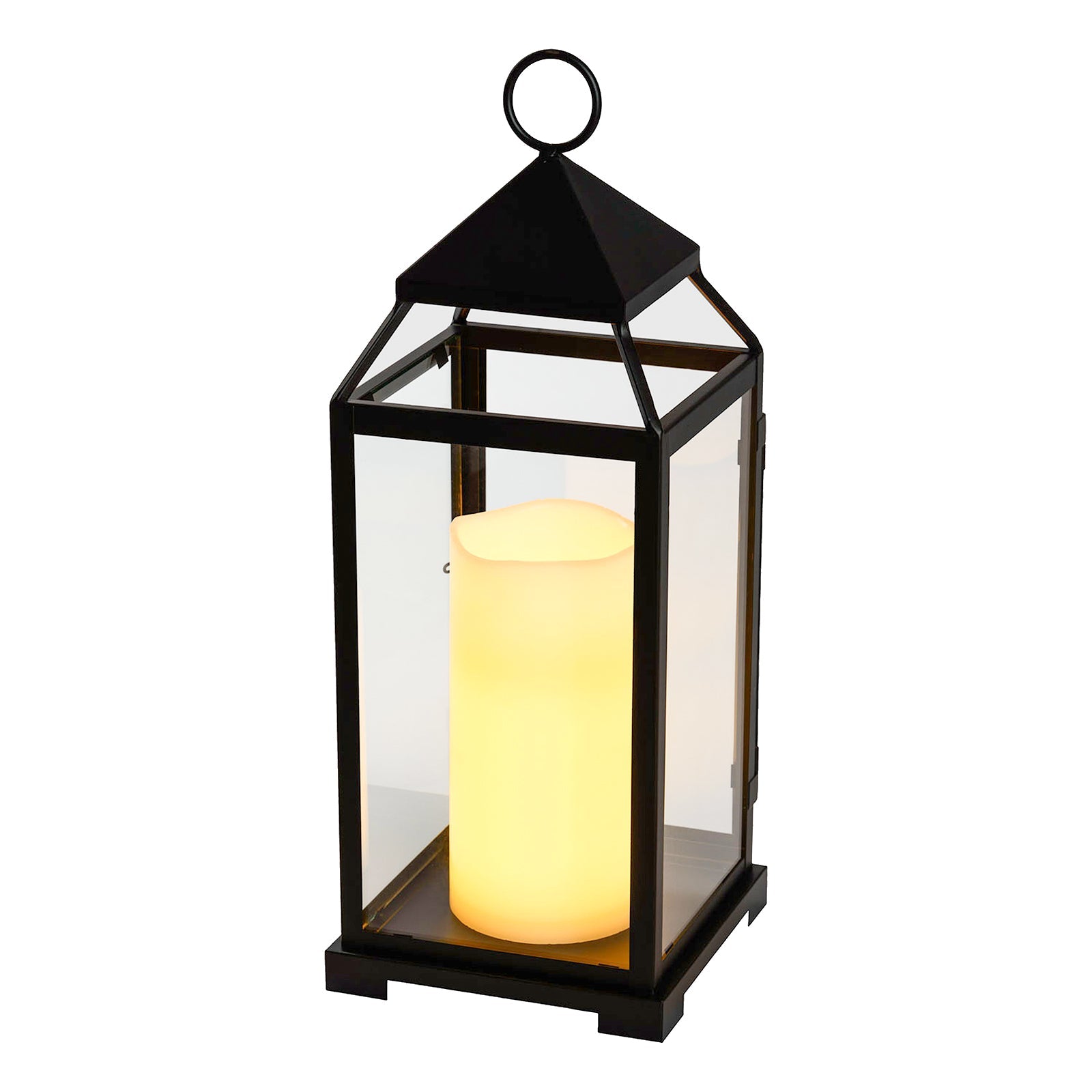 Lanterne à piles avec bougie effet flamme LED blanc chaud pour l'intérieur.