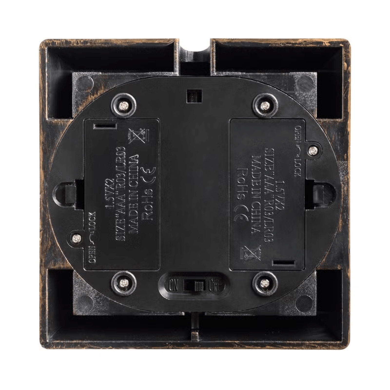 Il mesure 27,5 centimètres de haut et 10,5 centimètres de large. Il fonctionne avec 4 piles AAA non incluses, à insérer dans la base. Si vous préférez, vous pouvez l'alimenter en achetant le transformateur en option.