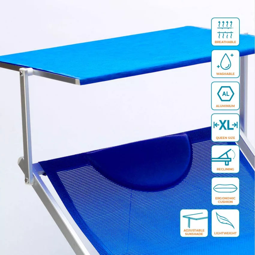 Fabriqué en alliage d'aluminium et en tissu textilène 650 g/m2, ce transat se distingue par son solidité, légèreté et taille .