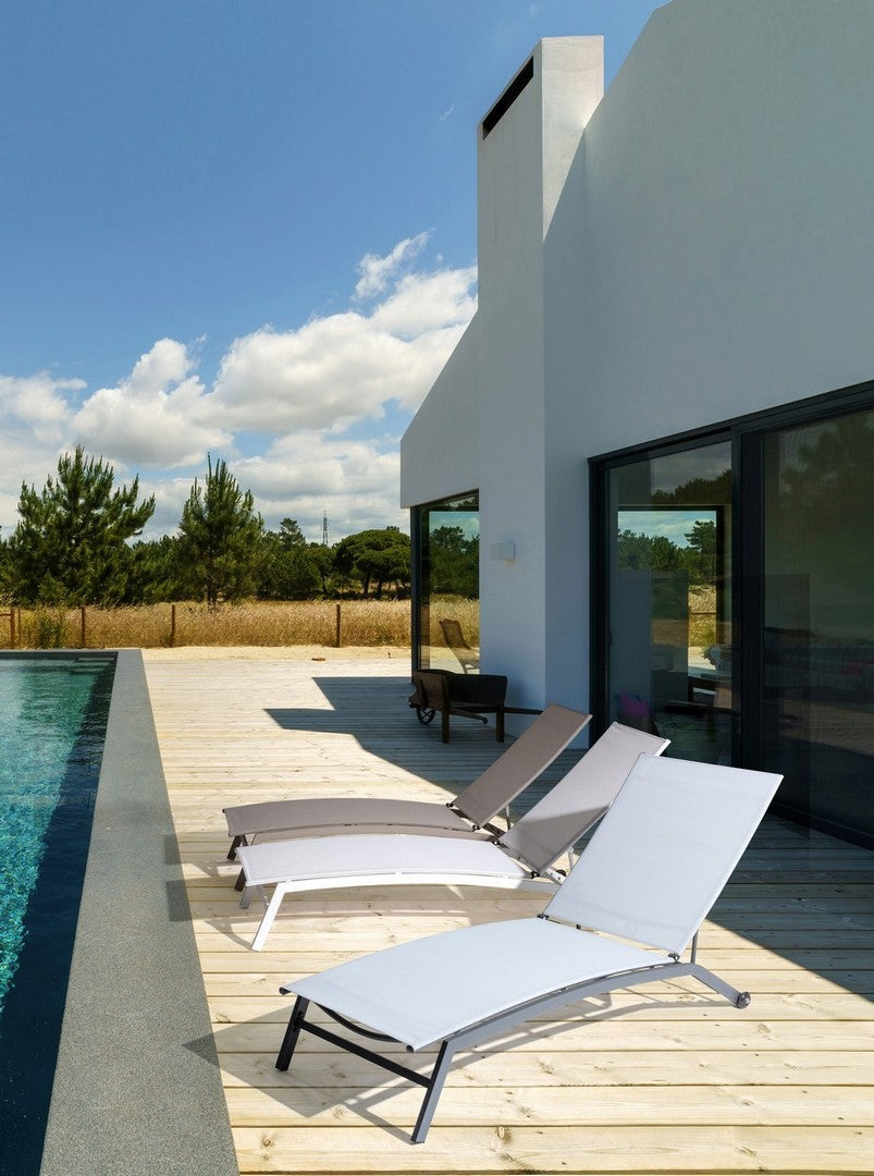 Pour garantir sa durabilité, l'acier est traité avec un revêtement en poudre, un procédé qui non seulement protège le métal de la corrosion et des agents atmosphériques, mais donne à la chaise longue un look élégant et contemporain.