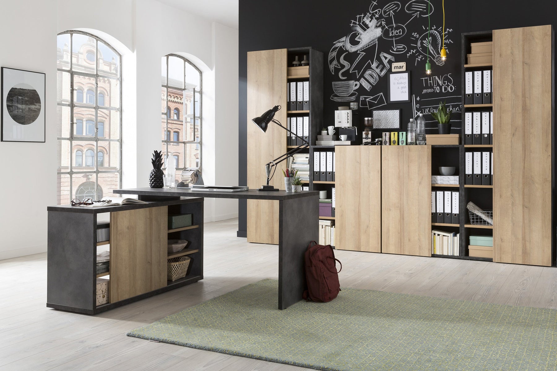 La porte qui recouvre la majeure partie de la bibliothèque est réversible, lors du montage vous pouvez choisir de laisser l'espace toujours accessible à gauche ou à droite.