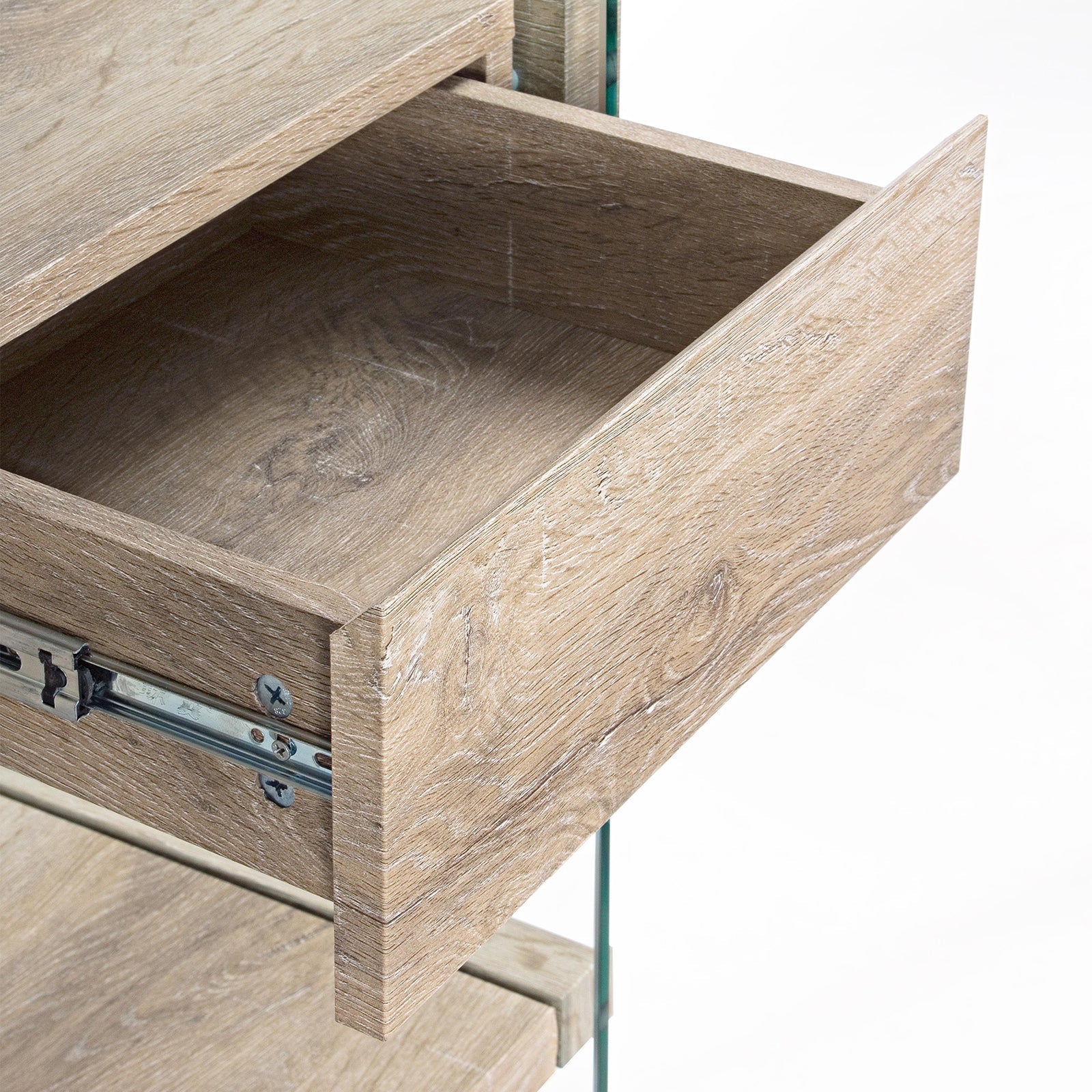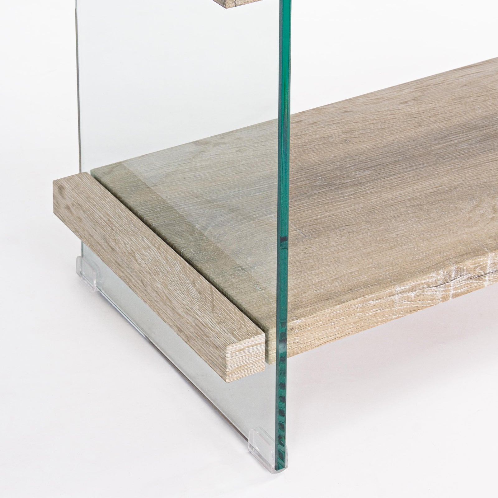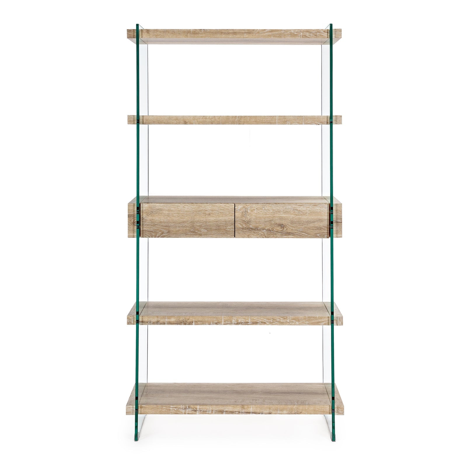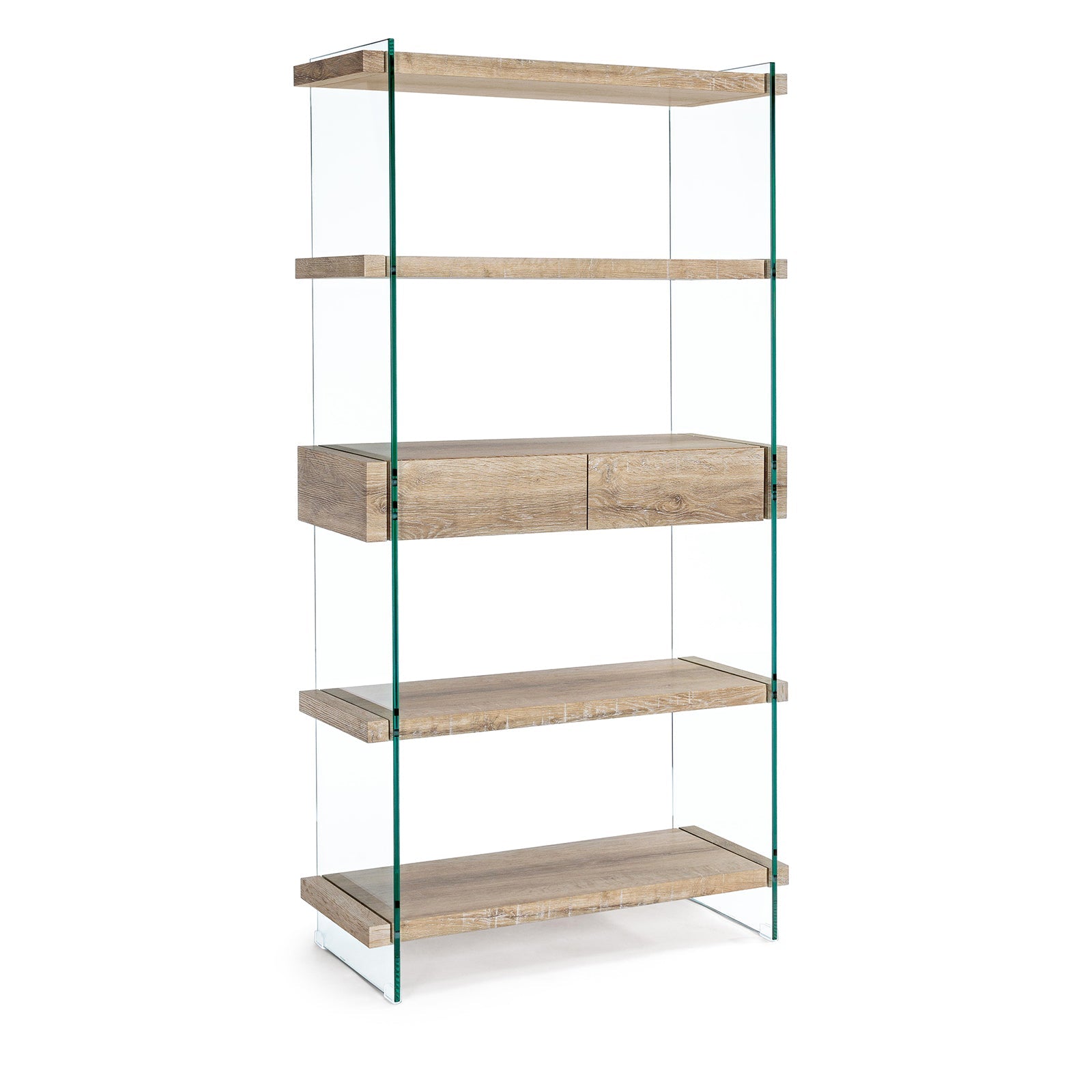 Bibliothèque élégante avec panneaux latéraux en verre trempé.