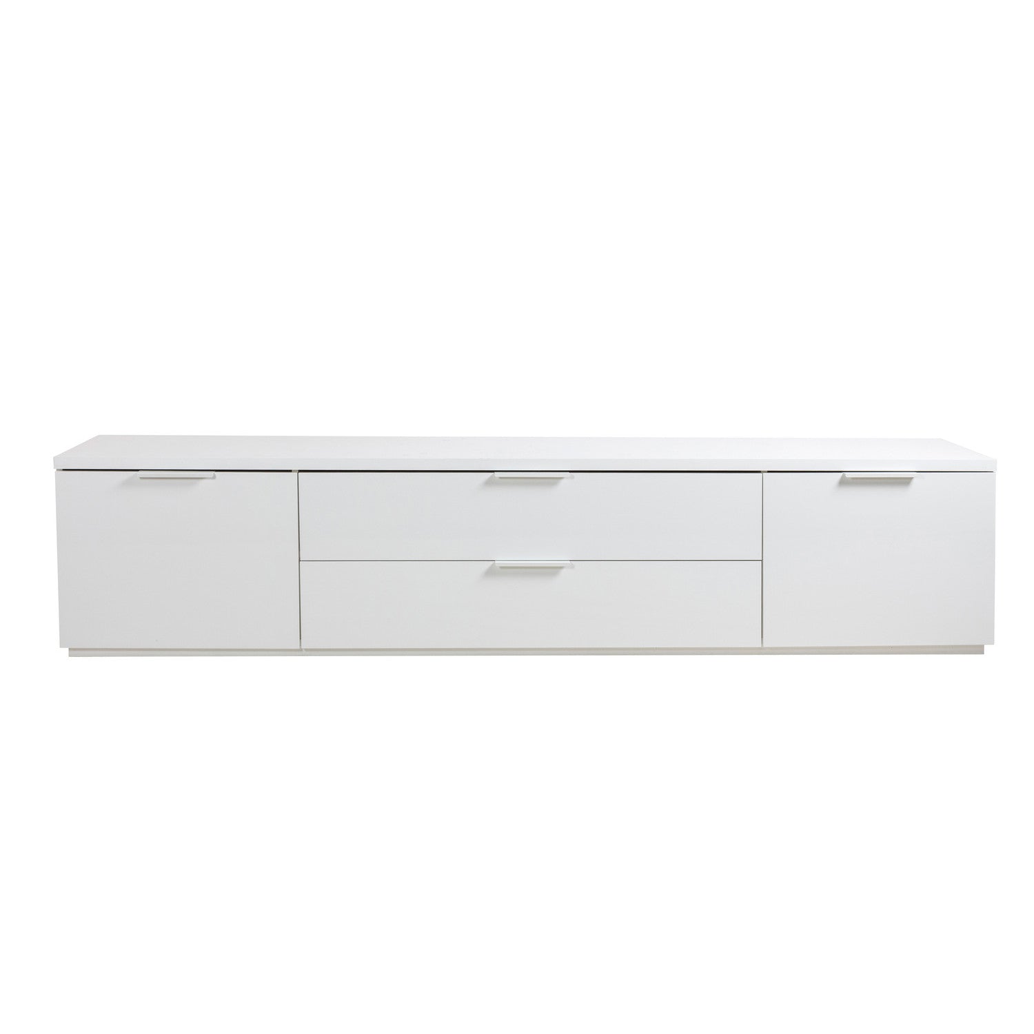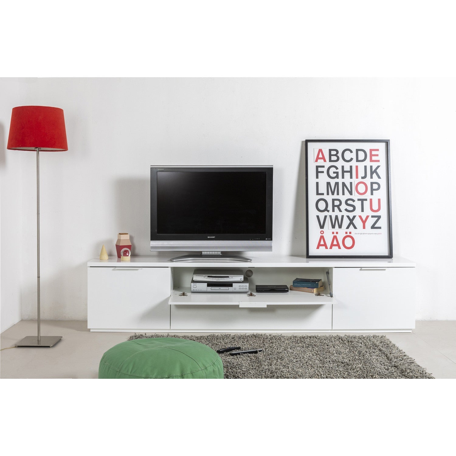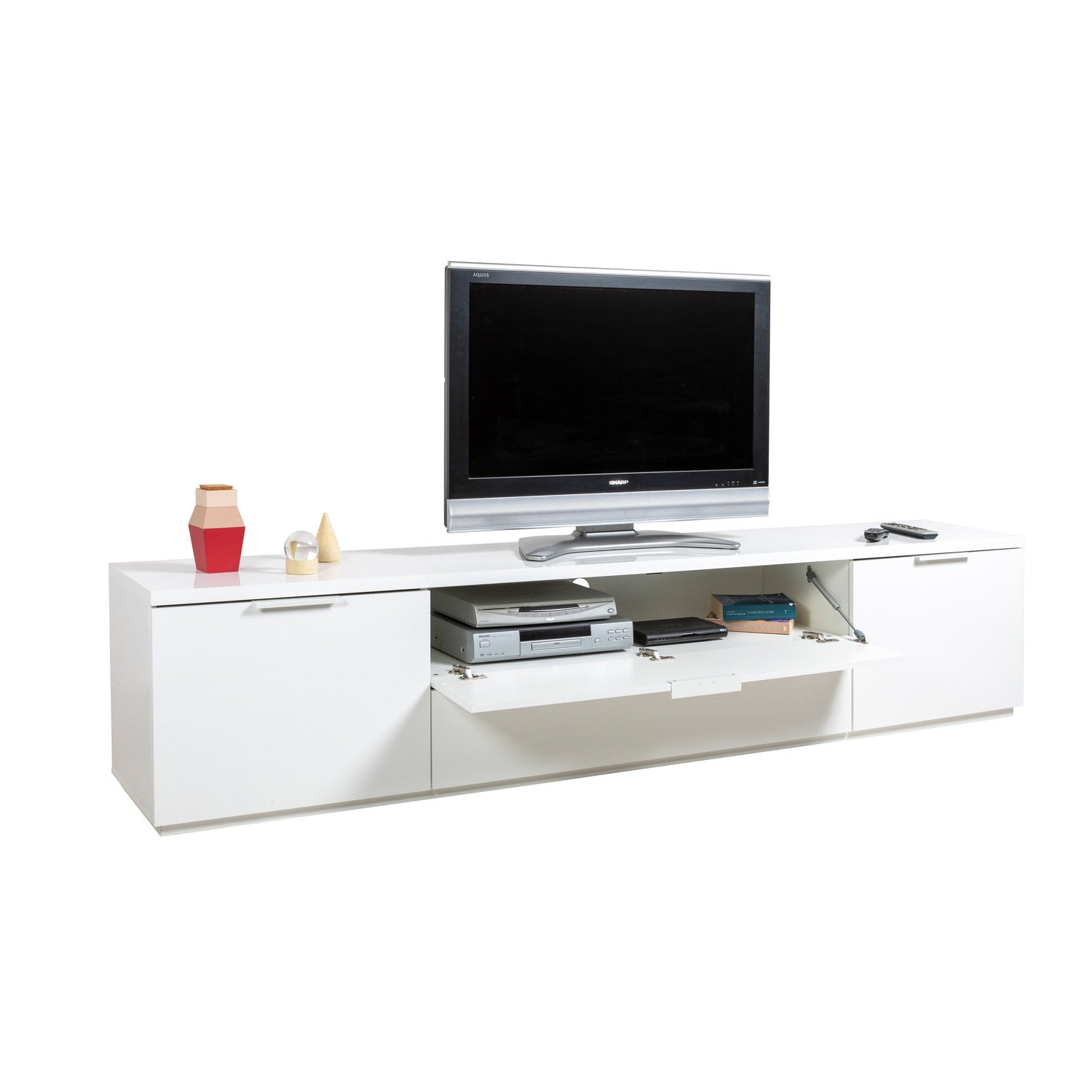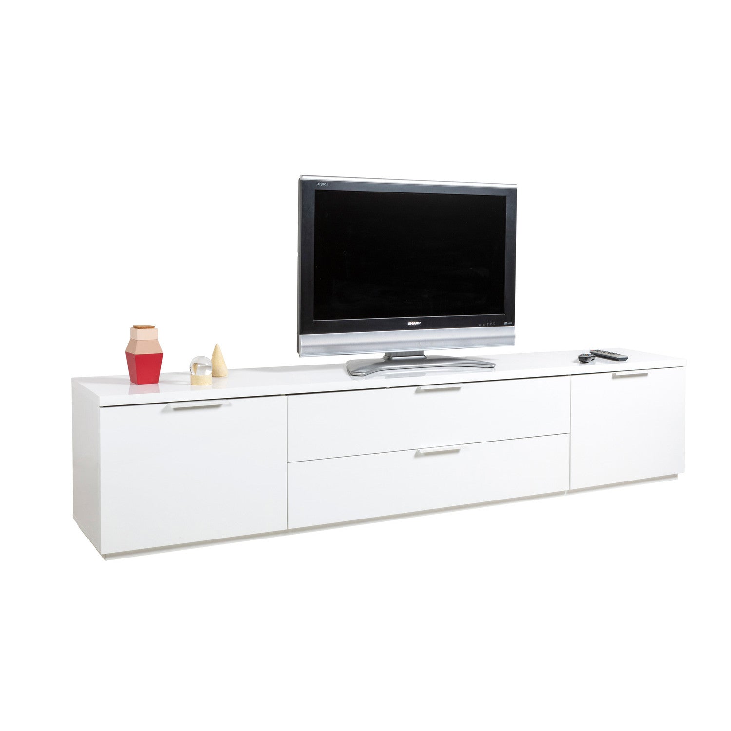 Ce meuble TV est un meuble moderne de haute qualité, le tiroir noir crée un contraste fantastique qui rappelle les pieds du meuble.