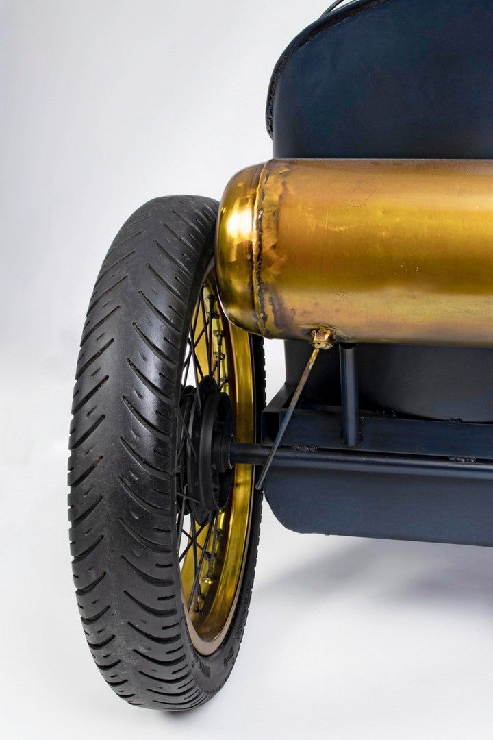 Avec une majestueuse structure en acier et un plateau en bois, ce meuble est une déclaration de style et de solidité.