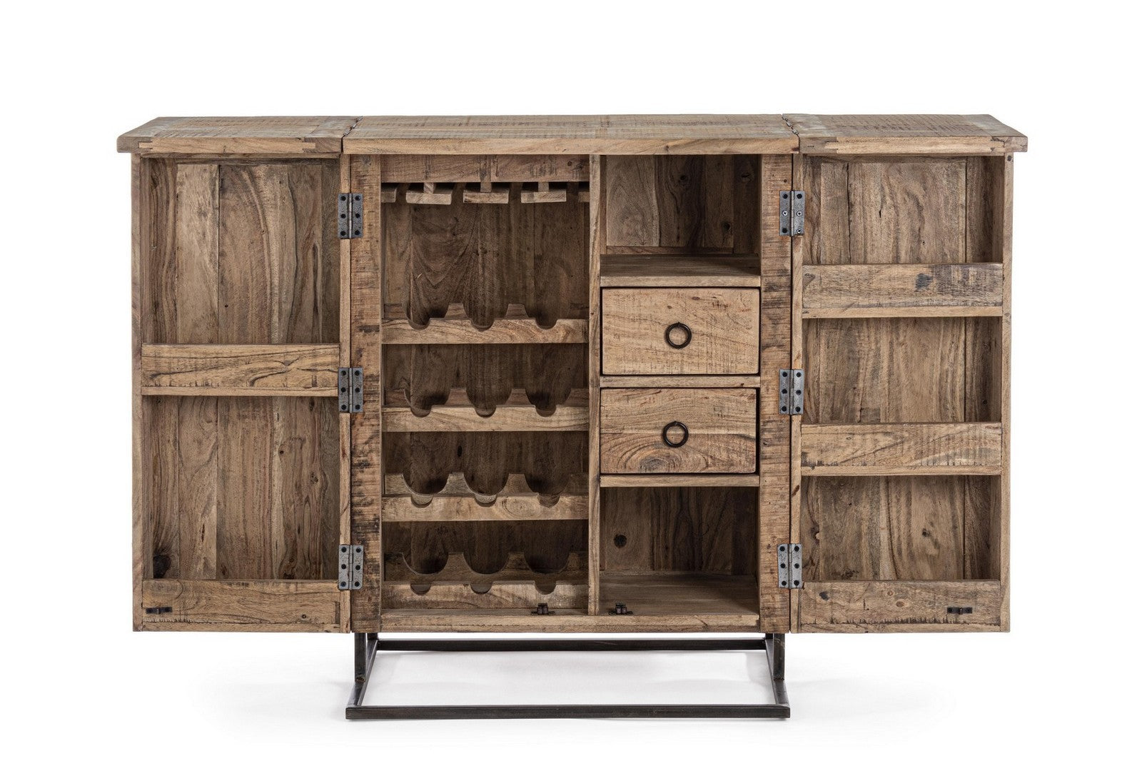 « Elmer » allie la beauté du bois d'acacia à la praticité d'un design à deux portes, offrant ainsi un meuble bar qui se démarque par son style et son efficacité.