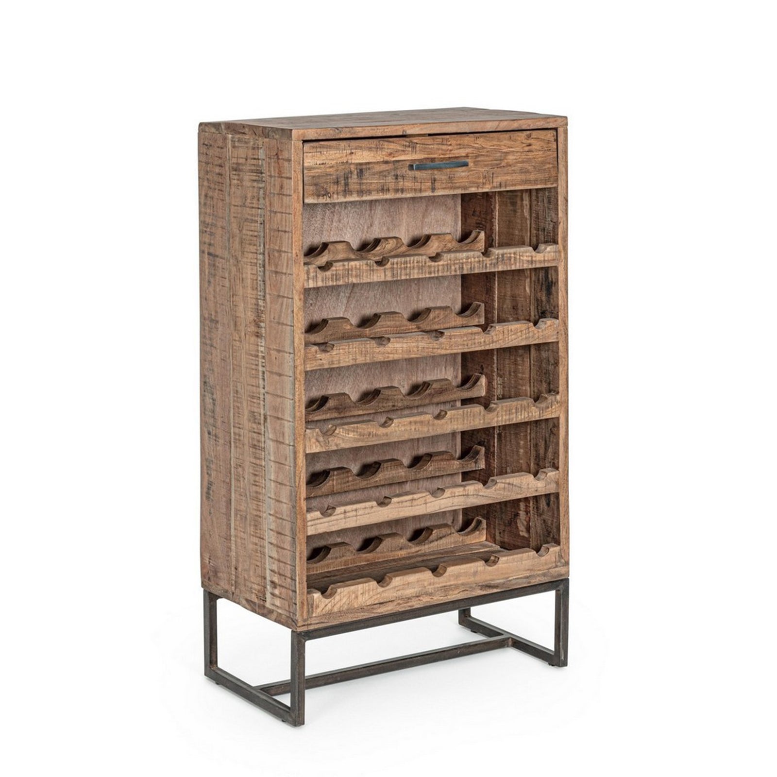 Ses dimensions de 60 x 32 x 107 cm le rendent adapté à une variété d'espaces intérieurs. "Elmer" est conçu pour accueillir des bouteilles de vin ou de spiritueux, permettant une présentation élégante et soignée.