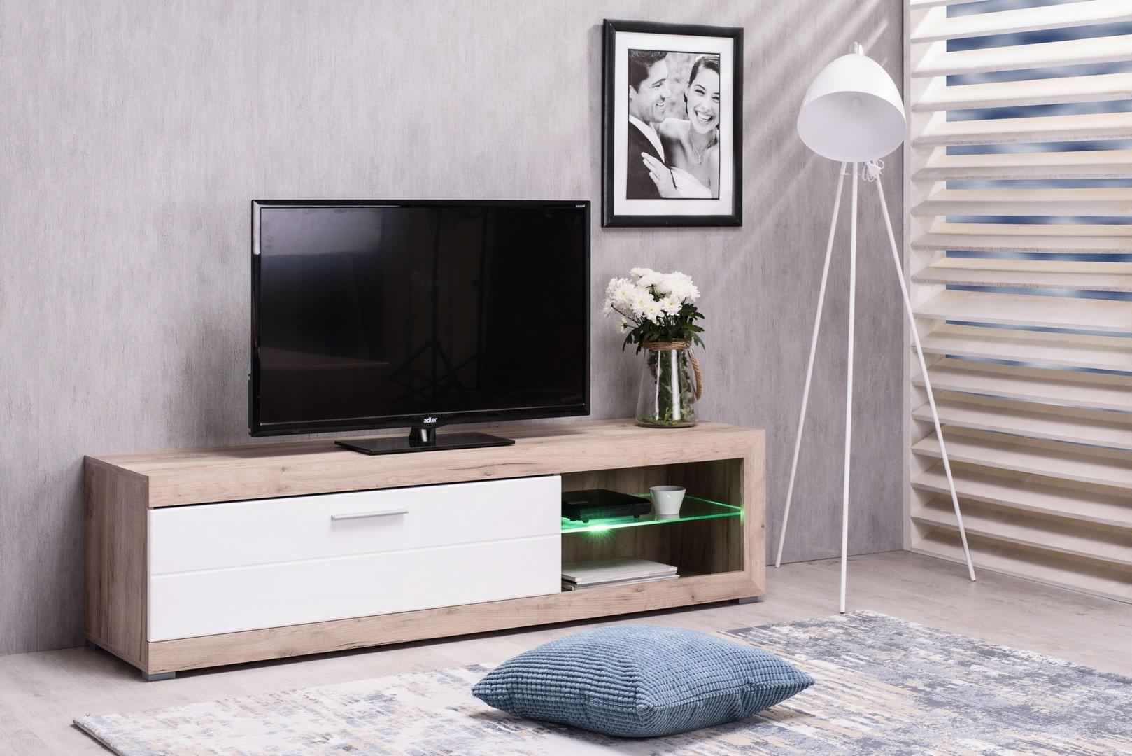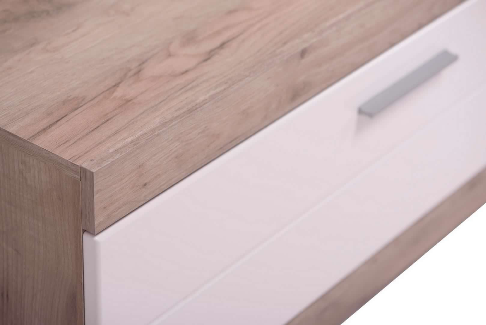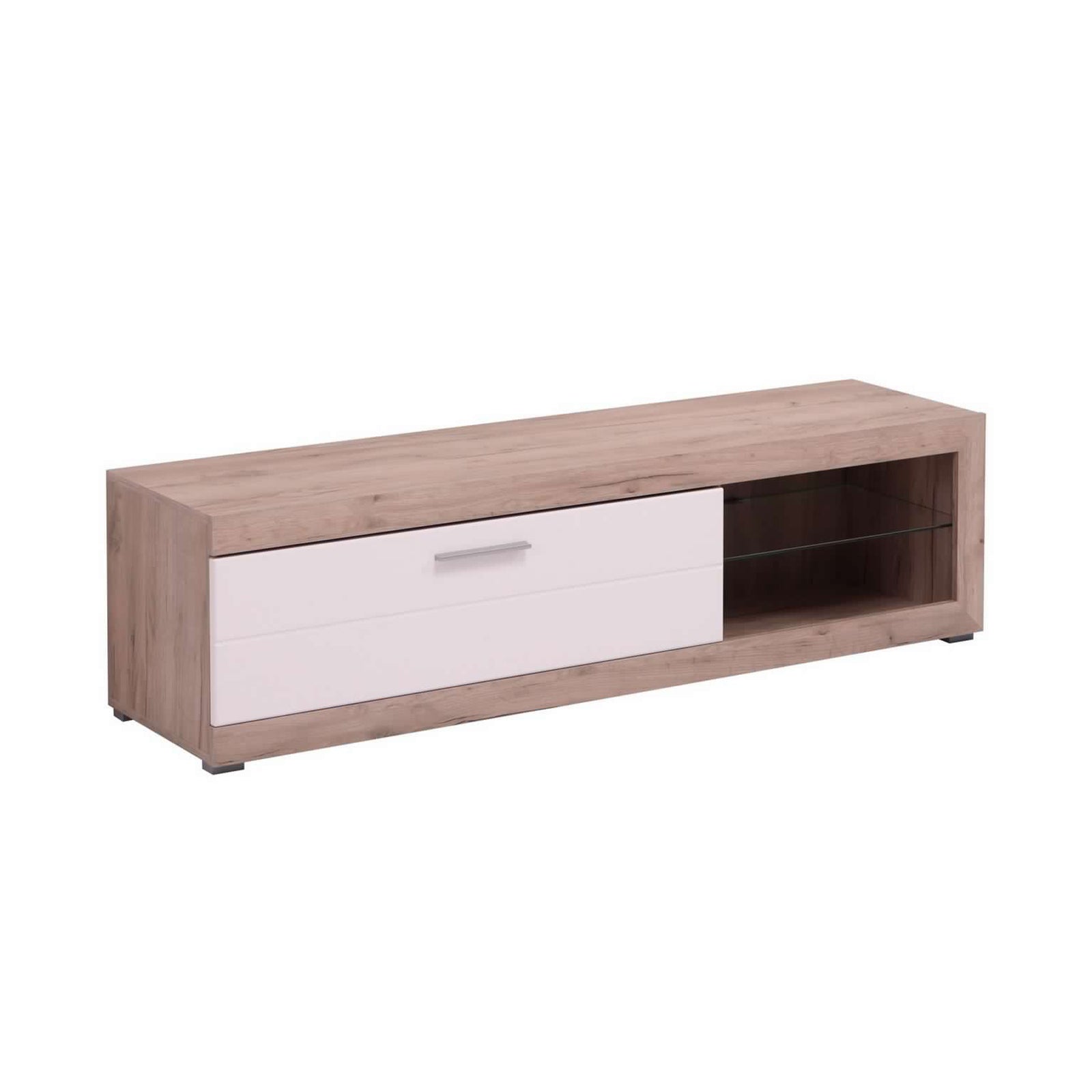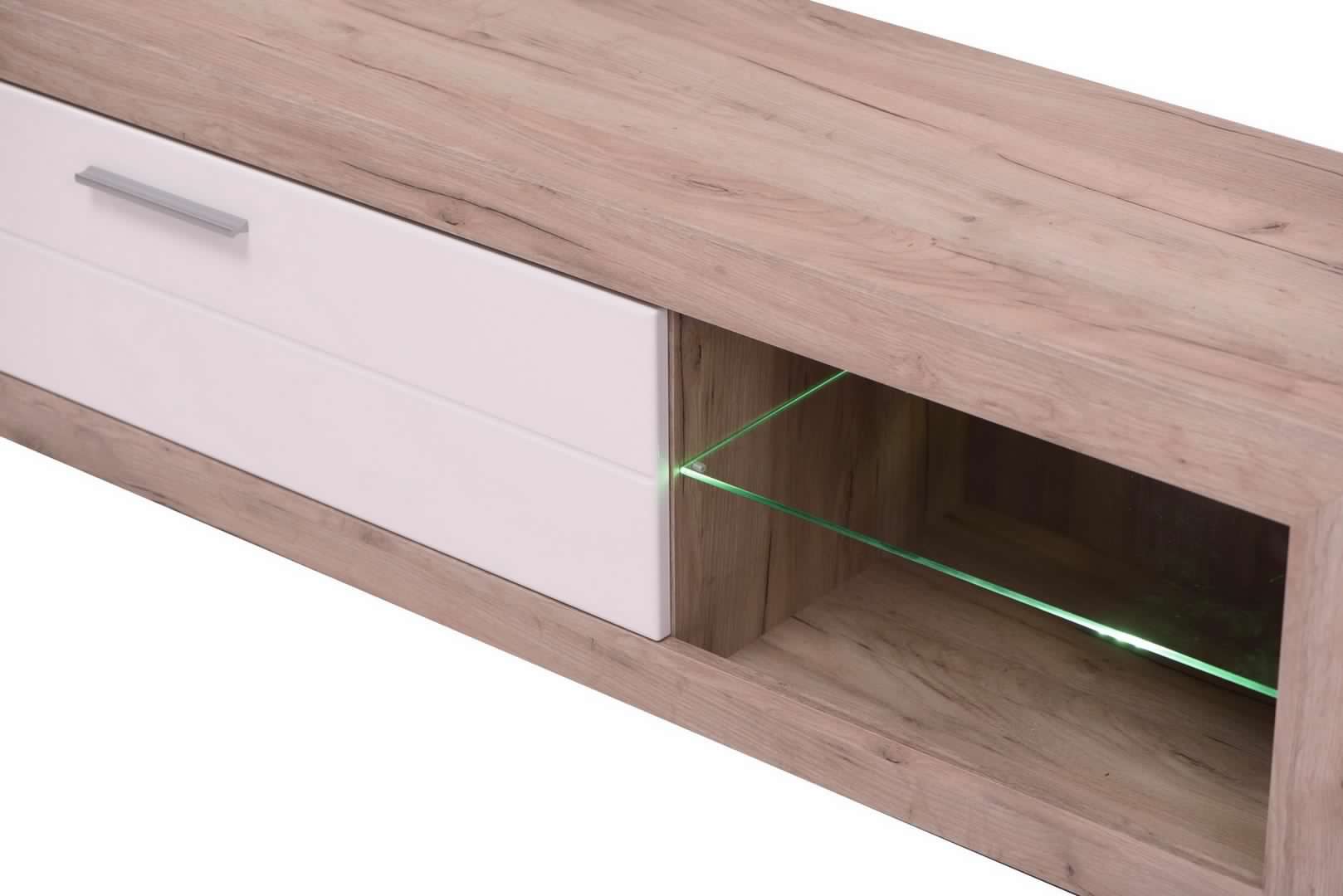Fabriqué en chêne et blanc, il a des dimensions de 162x43.5 cm, ce qui le rend parfait pour s'adapter à n'importe quel espace.Equipé de grandes étagères, il offre suffisamment d'espace pour ranger des appareils multimédia, des livres ou des décorations.Grâce à sa conception robuste et à sa construction de qualité, il peut contenir de grands téléviseurs de manière sûre et stable.Avec une combinaison d'élégance et de fonctionnalité, le meuble TV Emily Oak-White est un choix idéal pour ajouter du style et de l'organisation à votre salle multimédia.Détails