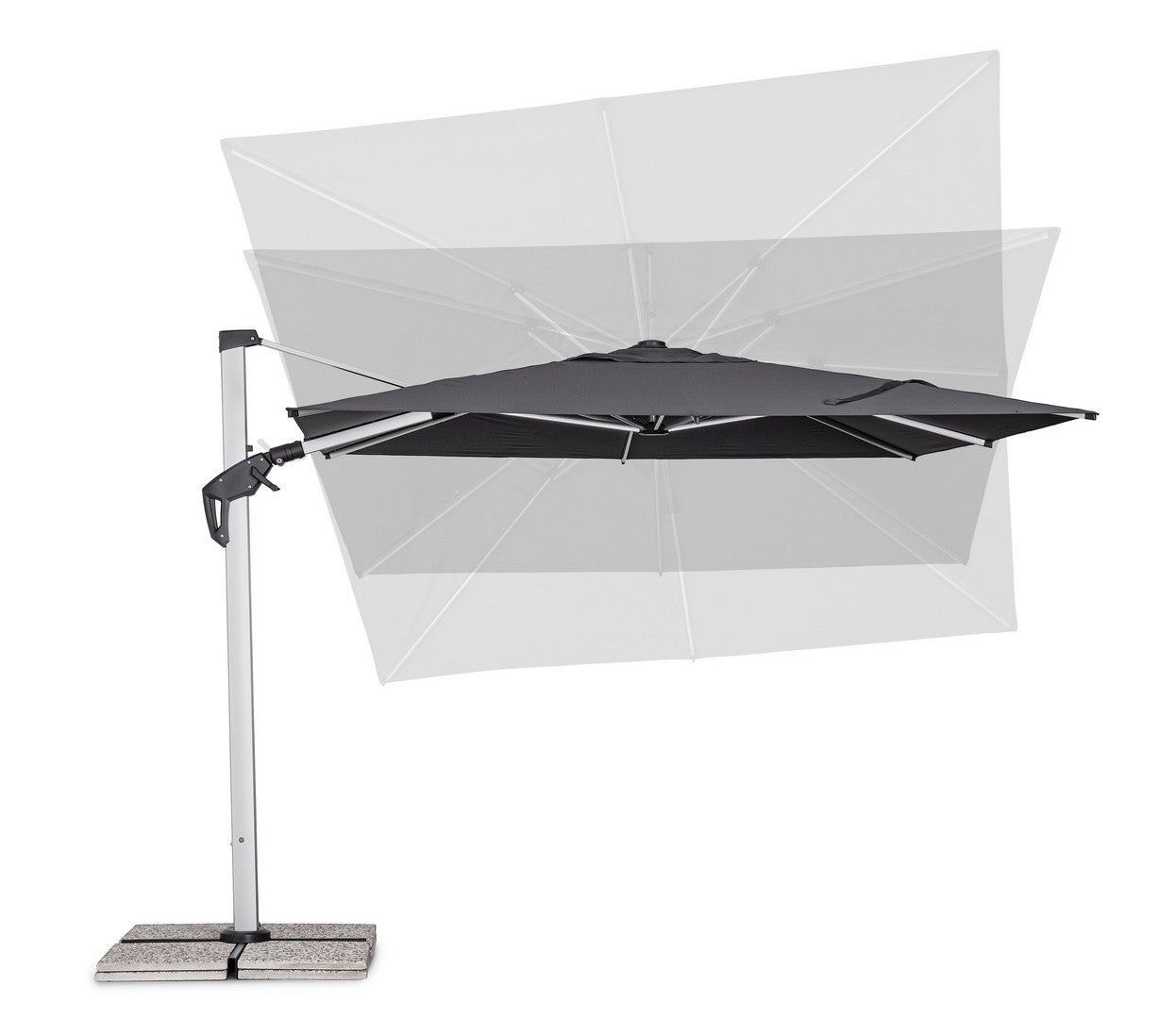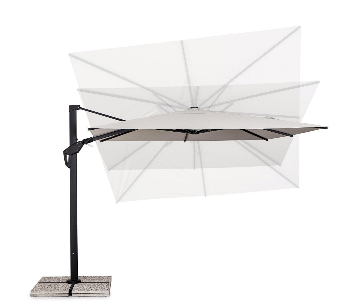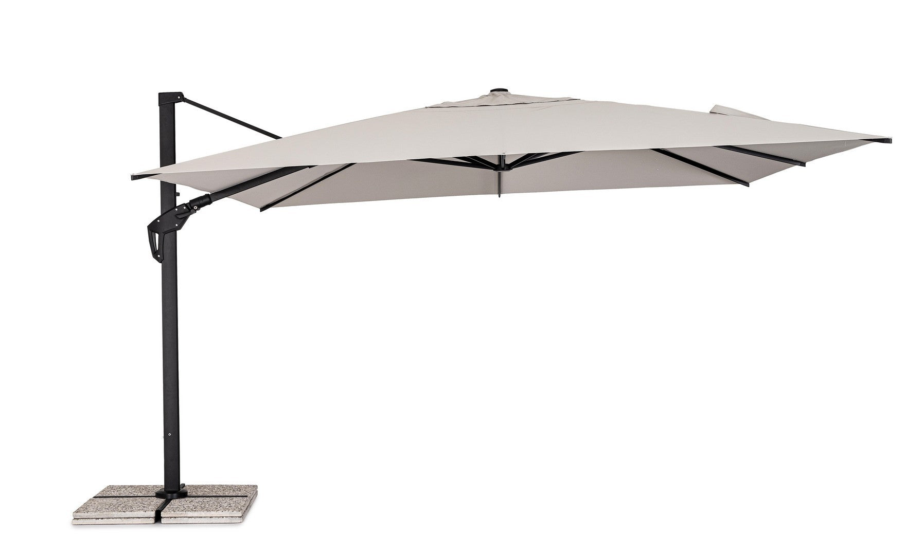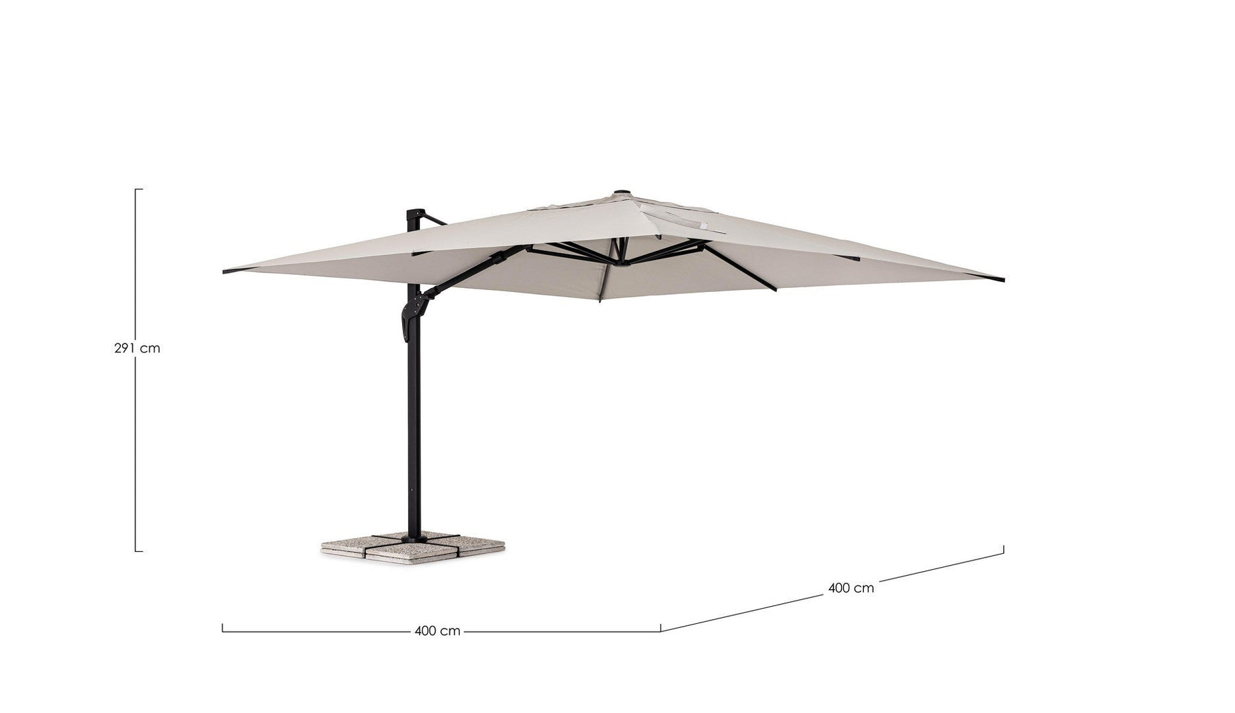 Parasol de jardin avec mât décentré en acier thermolaqué.