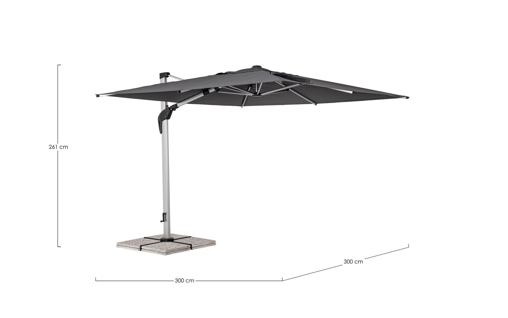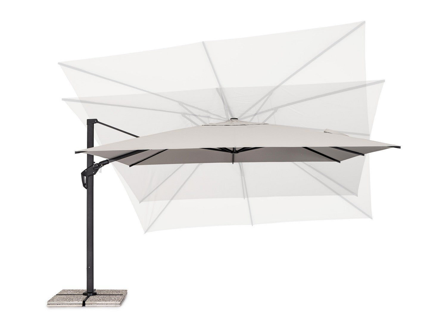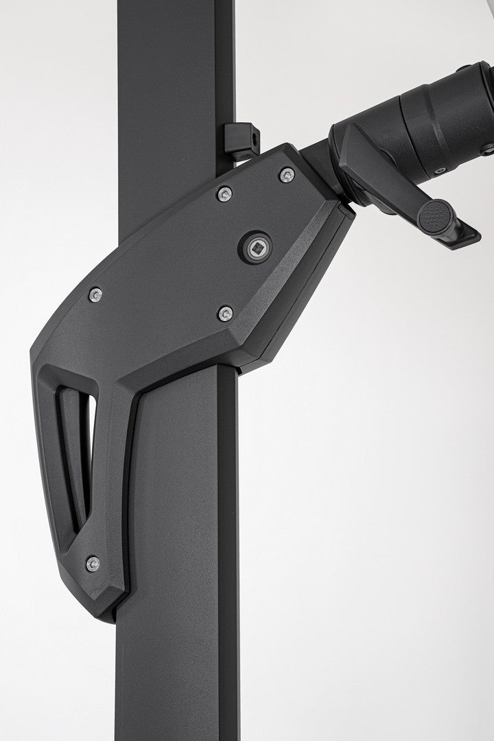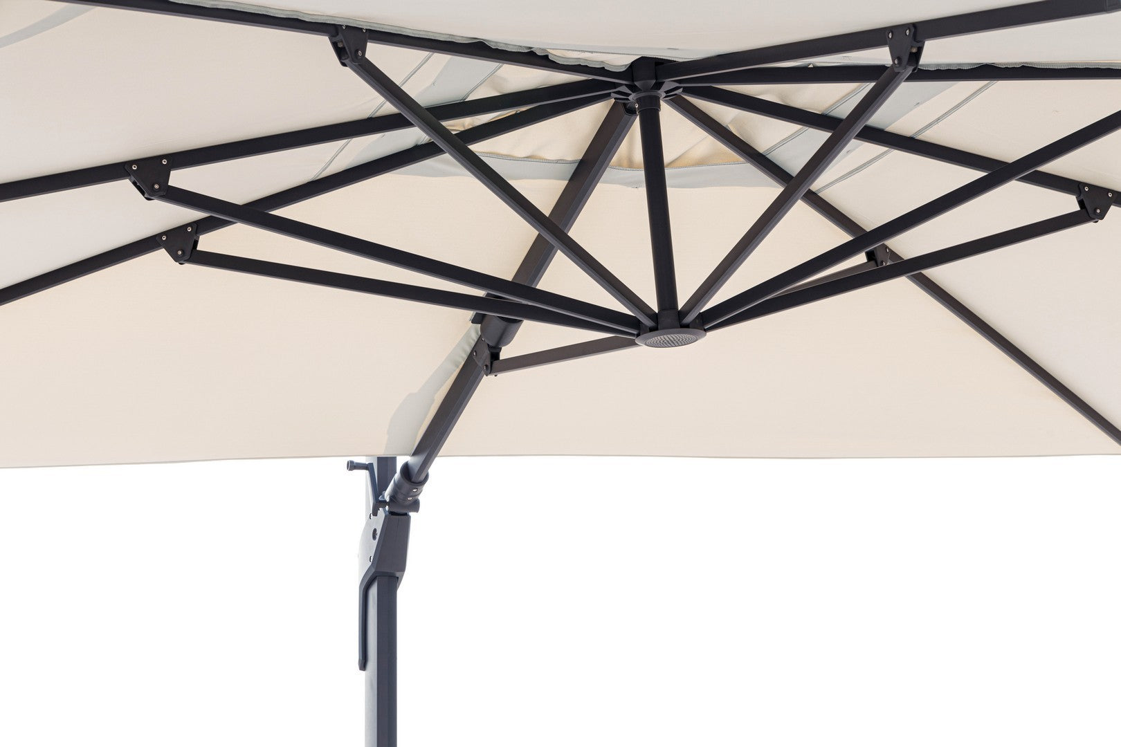 Parasol de jardin avec mât décentré en acier thermolaqué.