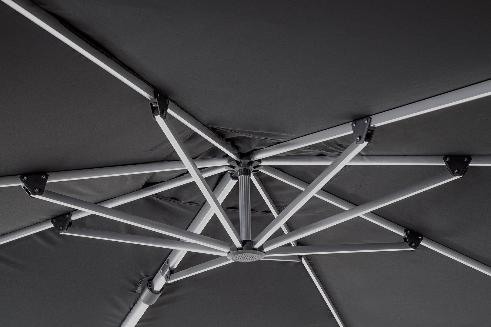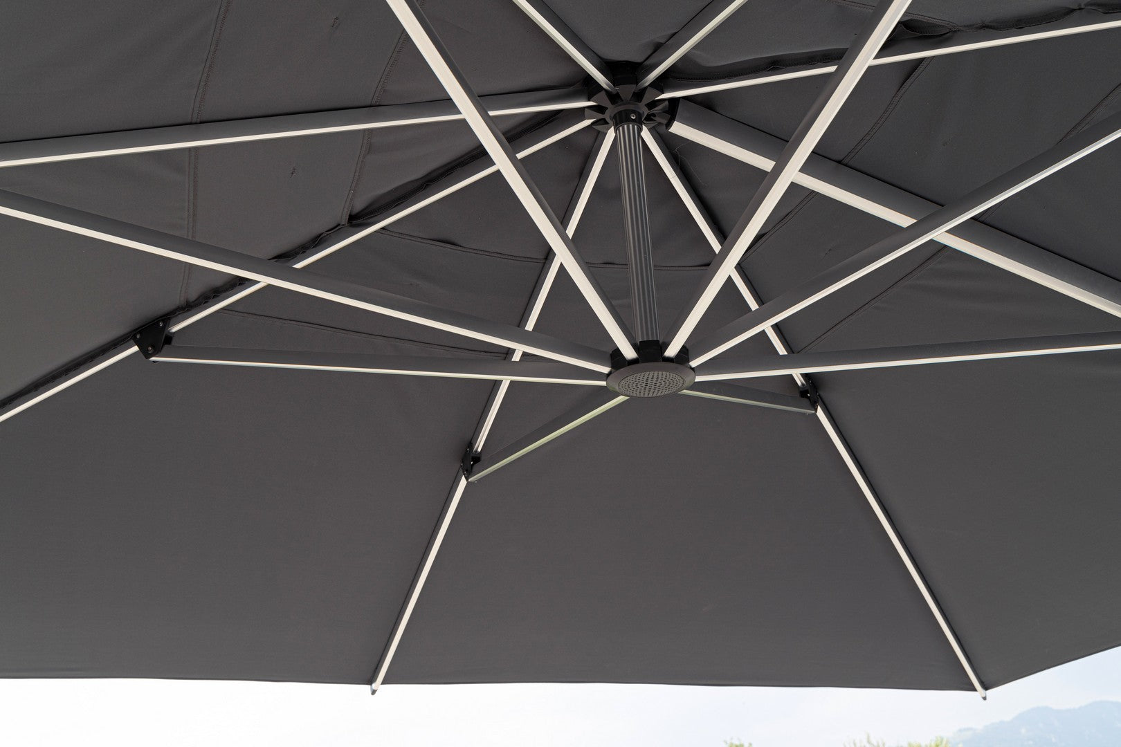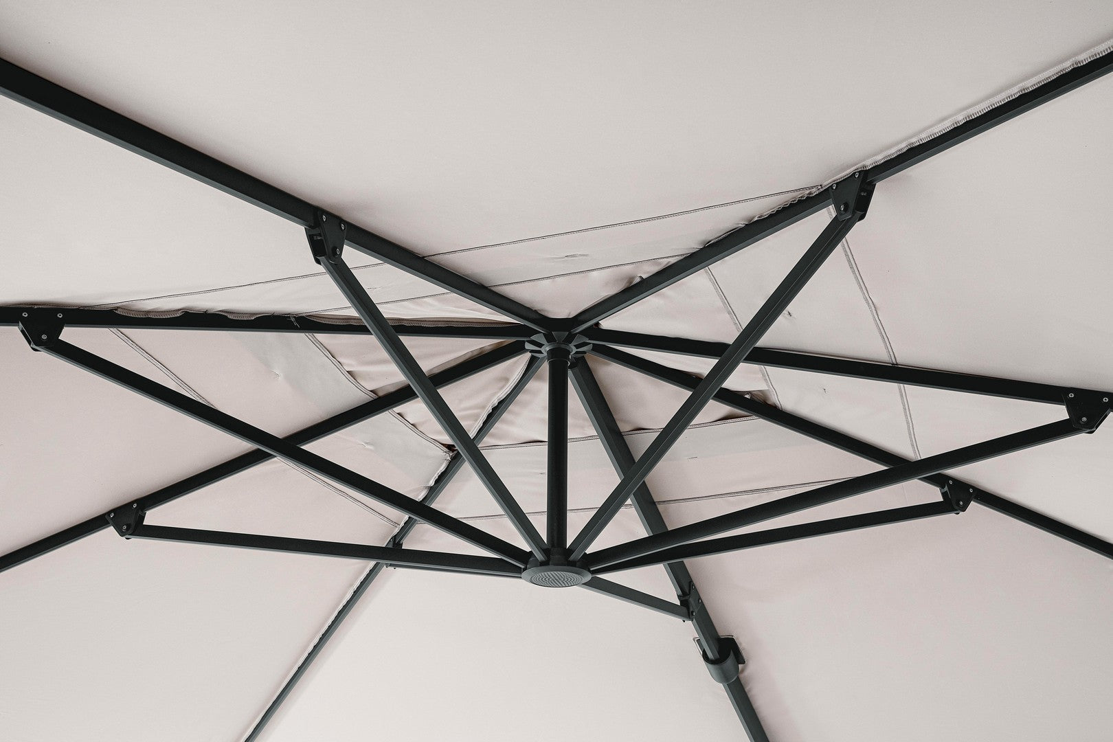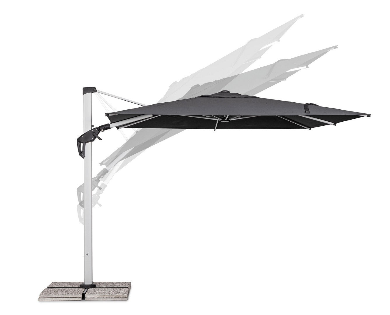Parasol de jardin avec mât décentré en acier thermolaqué.